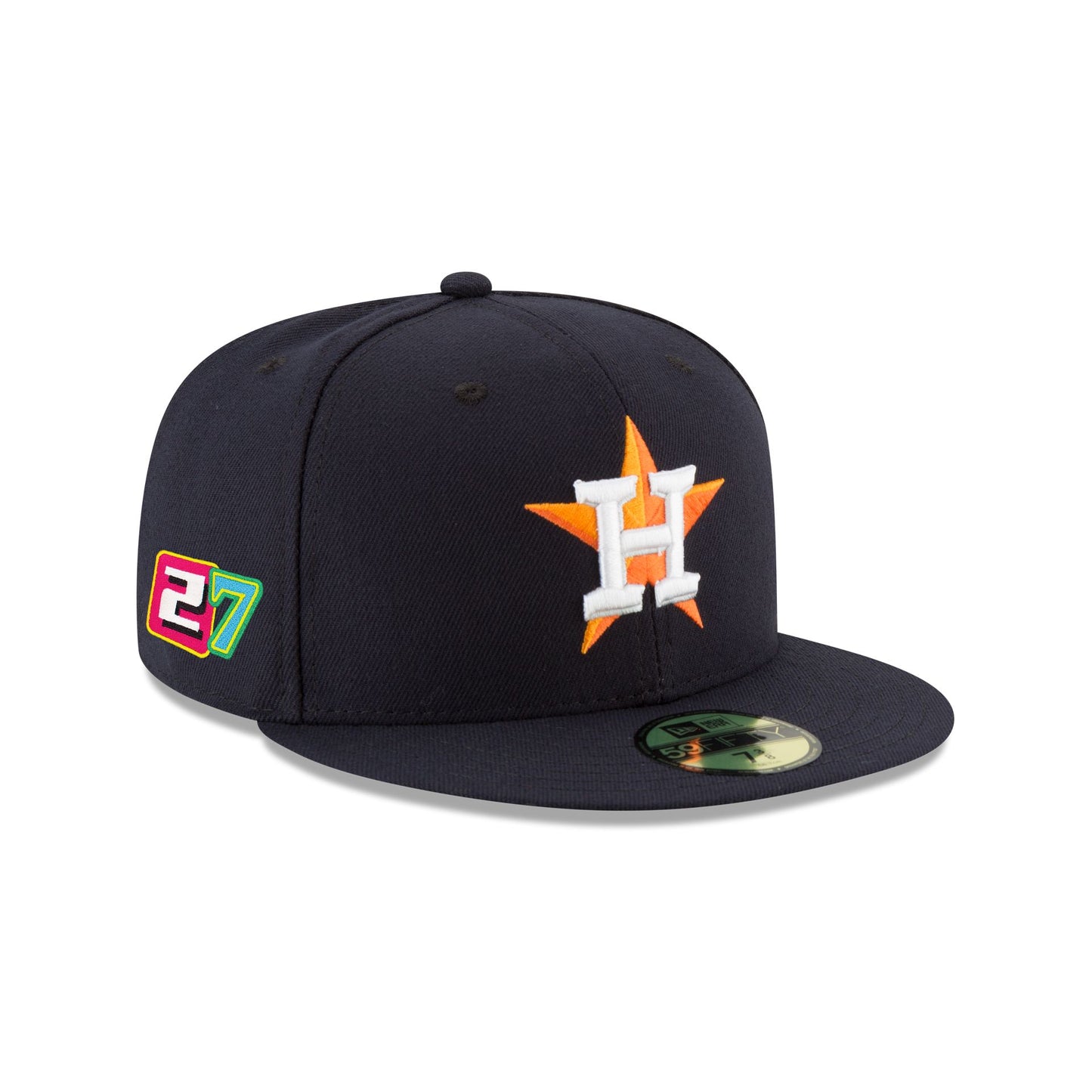 The Houston Astros Players' Weekend Sidepatch Altuve 59FIFTY Fitted Cap features an embroidered Astros logo at the front panels with the Players' number at the right-wear side. Additional details include an MLB Batterman logo at the rear and a black undervisor.