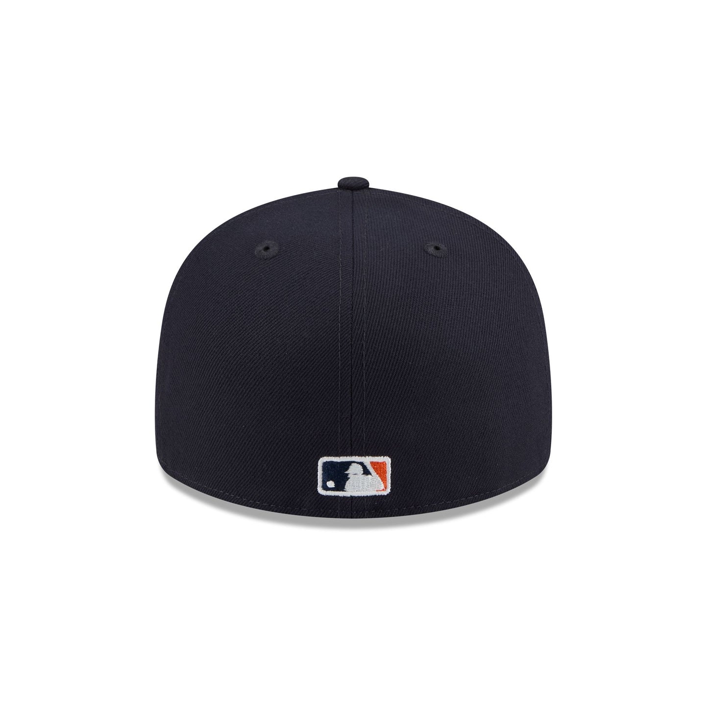 The Houston Astros Pre-Curve 59FIFTY Fitted Cap features an embroidered Astros logo at the front panels with a matching MLB Batterman logo at the rear, a pre-curved visor, and a gray undervisor.
