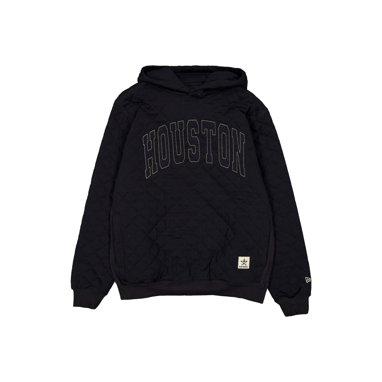 The Houston Astros Quilted Hoodie features a running stitched jersey applique Astros wordmark at the chest with a matching team jock tag at the hem and slit pockets at the sides.