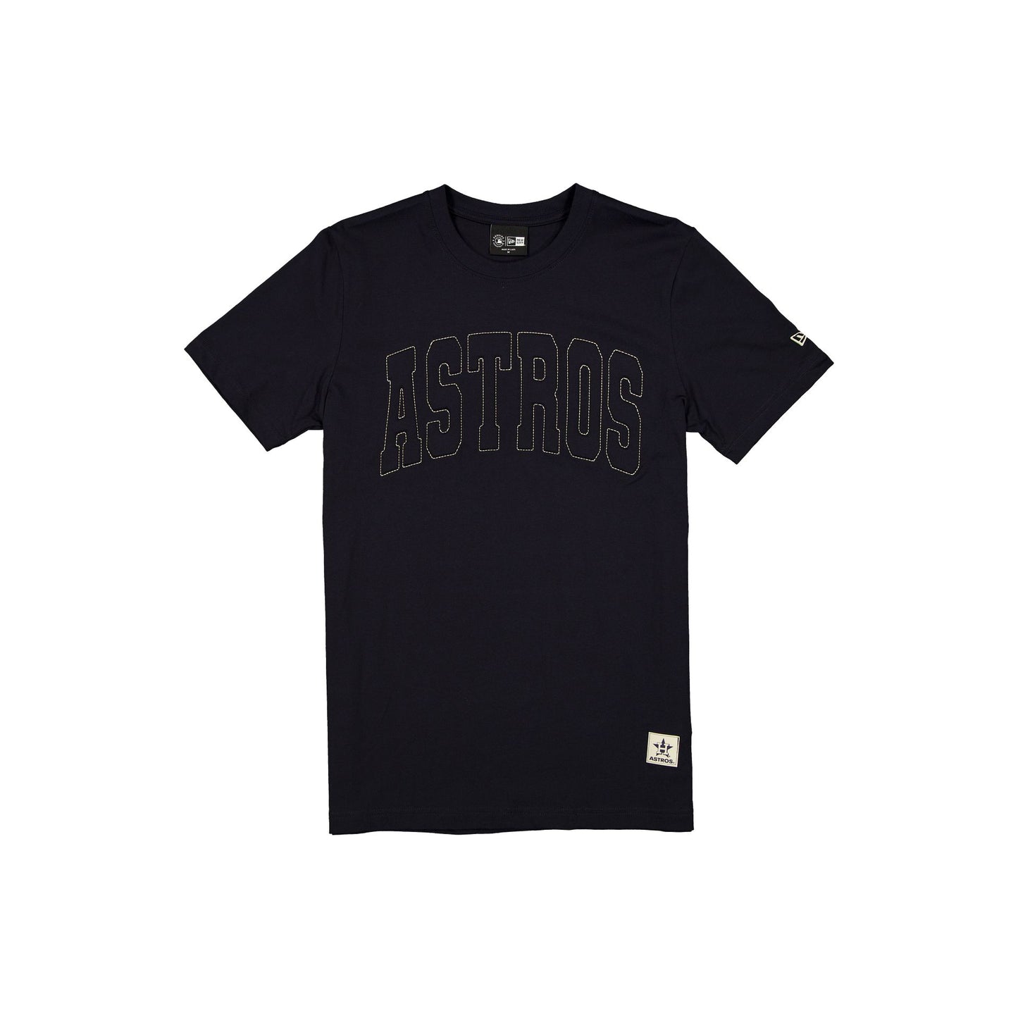 The Houston Astros Quilted T-Shirt features a fill foam running stitch embroidered Astros wordmark at the chest with a matching team jock tag at the hem.