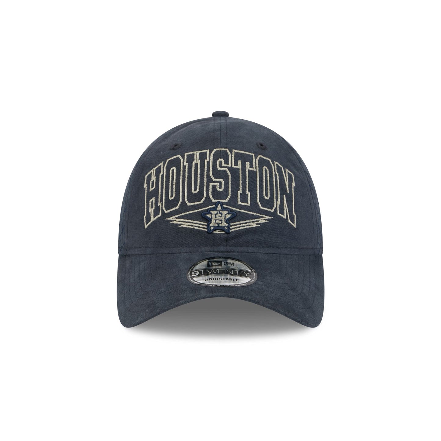 The Houston Astros Quilted Wordmark 9TWENTY Adjustable Cap features an embroidered Astros wordmark above a team logo at the front panels with a woven team logo tag at an adjustable D-Ring closure at the rear and a diamond quilted, brushed cotton all over fabrication.