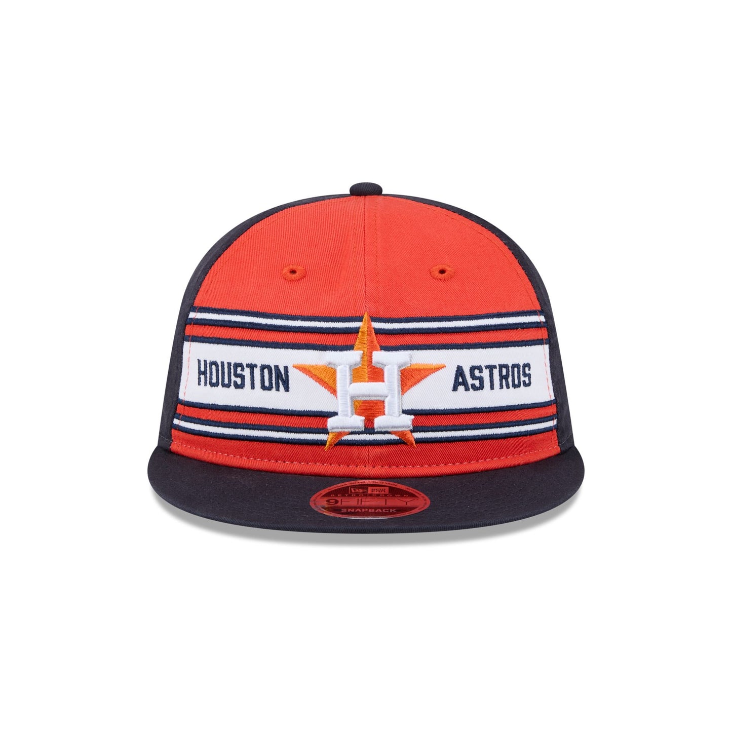 The Houston Astros Team Stripes Retro Crown 9FIFTY Snapback features an embroidered Astros team stripe logo and wordmark at the front panels with an adjustable snapback closure at the rear.