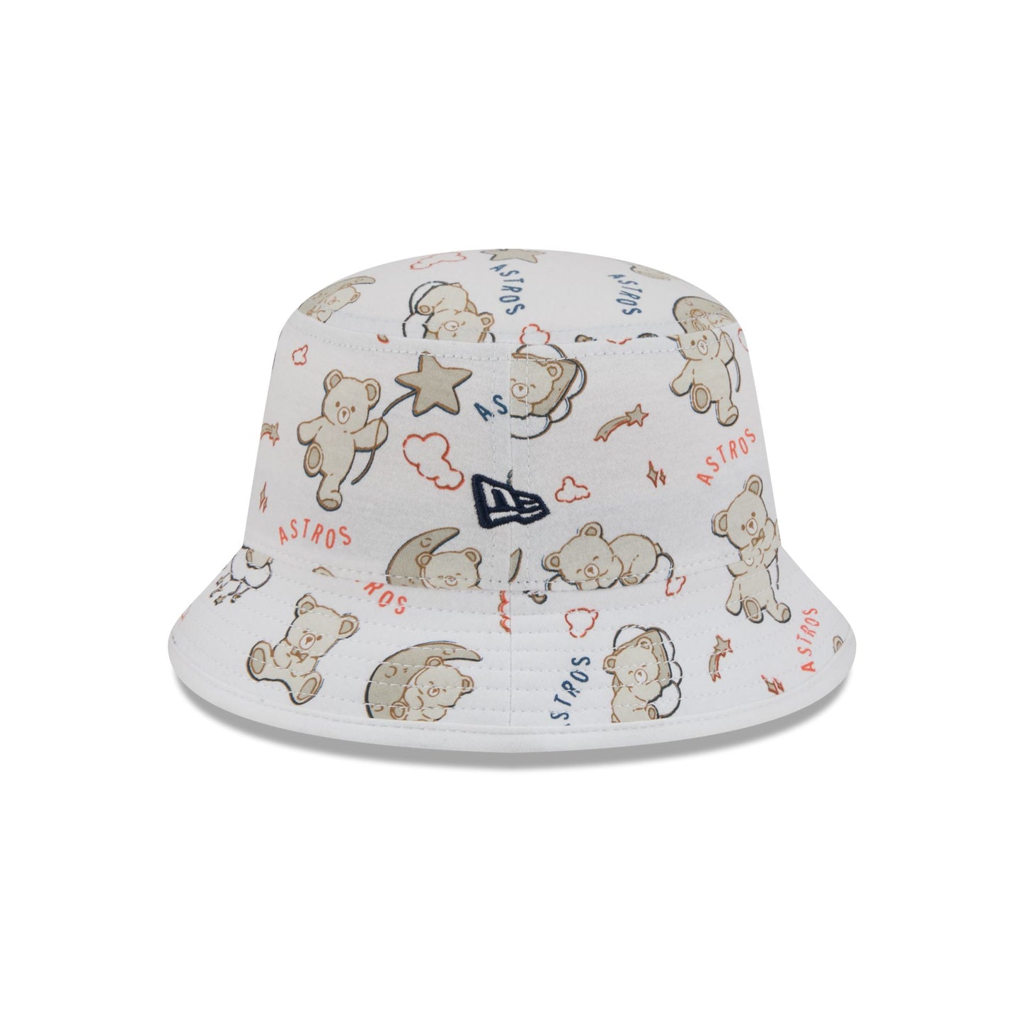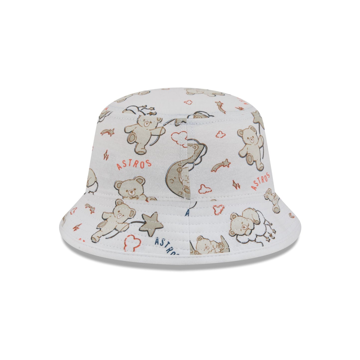 The Houston Astros Teddy Kids Bucket Hat features an embroidered Astros logo at the front with a teddy bear pattern throughout.