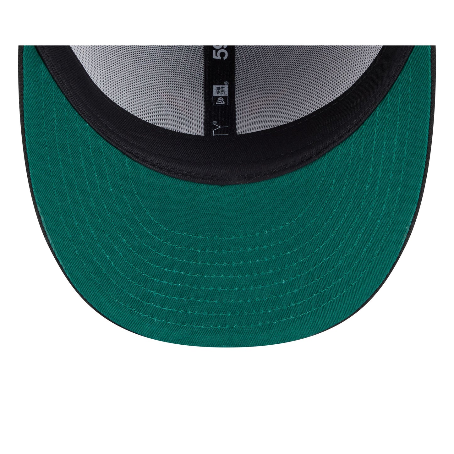 The Houston Astros Tonal Florals Black Pre-Curved 59FIFTY Fitted Cap features an embroidered Astros logo at the front panels with a team color visor and a green undervisor. Additional details include chainstitched embroidered flowers with handstitched beading at the left-wear side and a matching MLB Batterman logo at the rear.