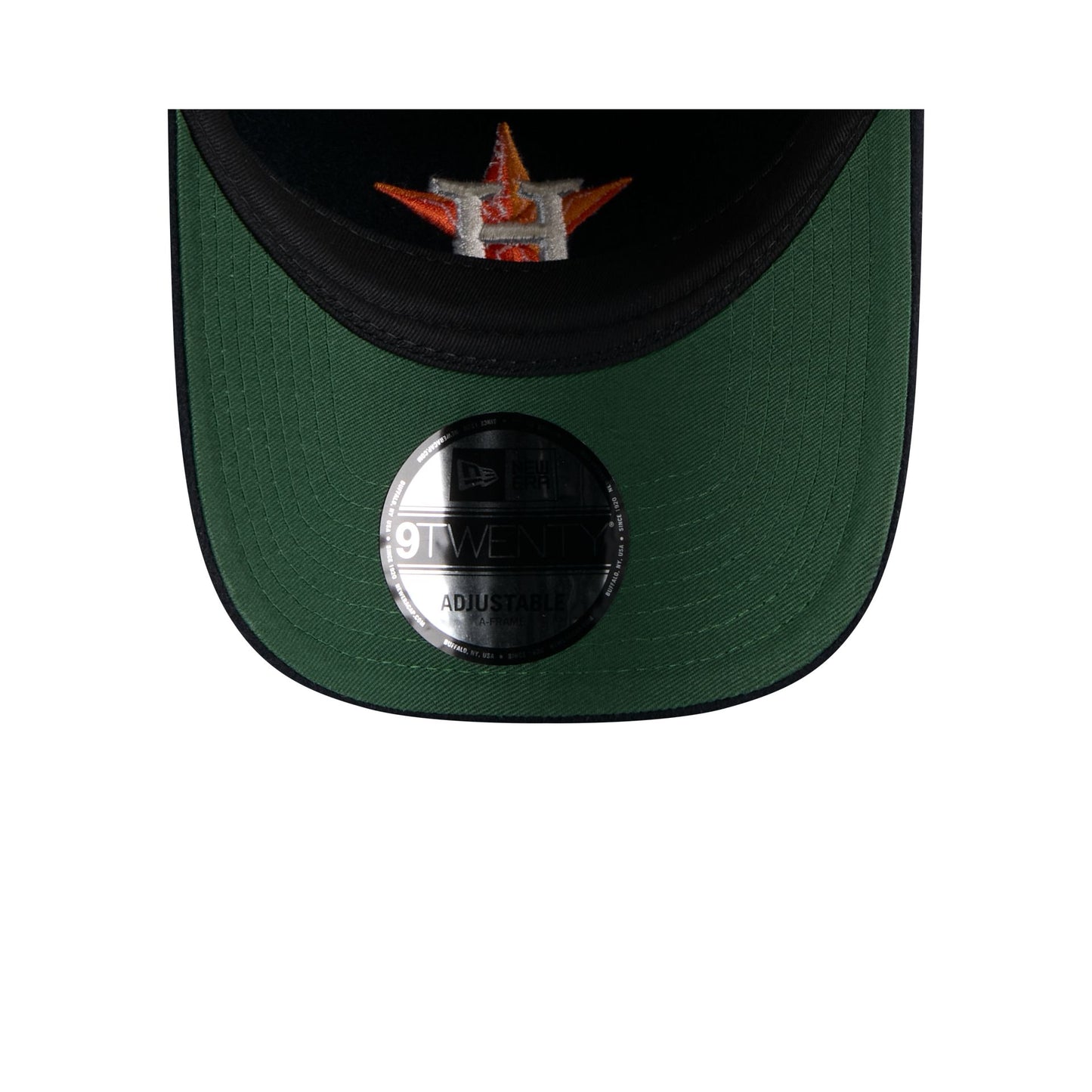 The Houston Astros Wool Letterman 9TWENTY A-Frame Adjustable Cap features an embroidered Astros logo at the front panels against a wool fabrication throughout the cap. Additional details include an embroidered team script at the visor with a striped adjustable D-Ring closure at the rear and a green undervisor.