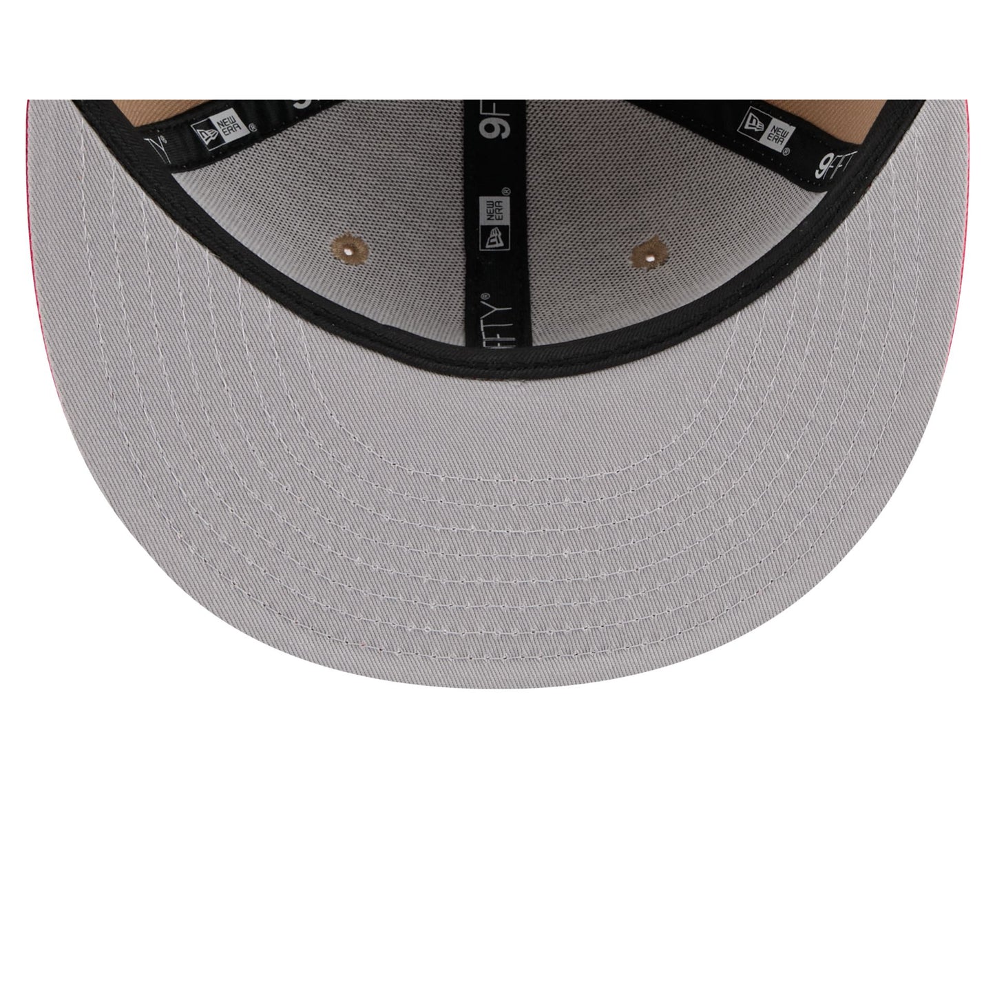 The Houston Rockets 2024 Draft 9FIFTY Snapback features an embroidered Rockets logo and team wordmark at the front panels with the official NBA Logoman above a snapback closure at the rear and a gray undervisor.