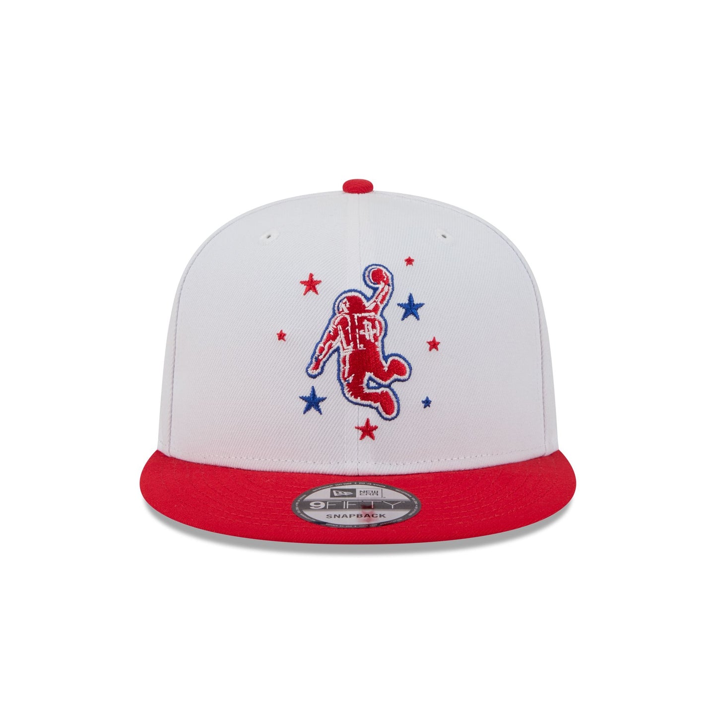 The Houston Rockets 2025 City Edition 9FIFTY Snapback features an embroidered Rockets City Edition logo at the front panels with a logo at the right-wear side. Additional details include the NBA Logoman above an adjustable snapback closure at the rear and a gray undervisor.