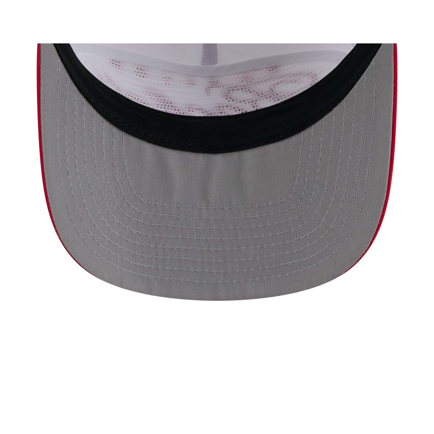 The Houston Rockets 2025 Draft 19TWENTY Adjustable Cap features an embroidered Rockets script wordmark at the front panels with a team logo at the right-wear side. Additional details include a woven silicone NBA Logoman patch above an adjustable buckle closure at the rear and a gray undervisor. The strap features a National Basketball Association gel print wordmark.
