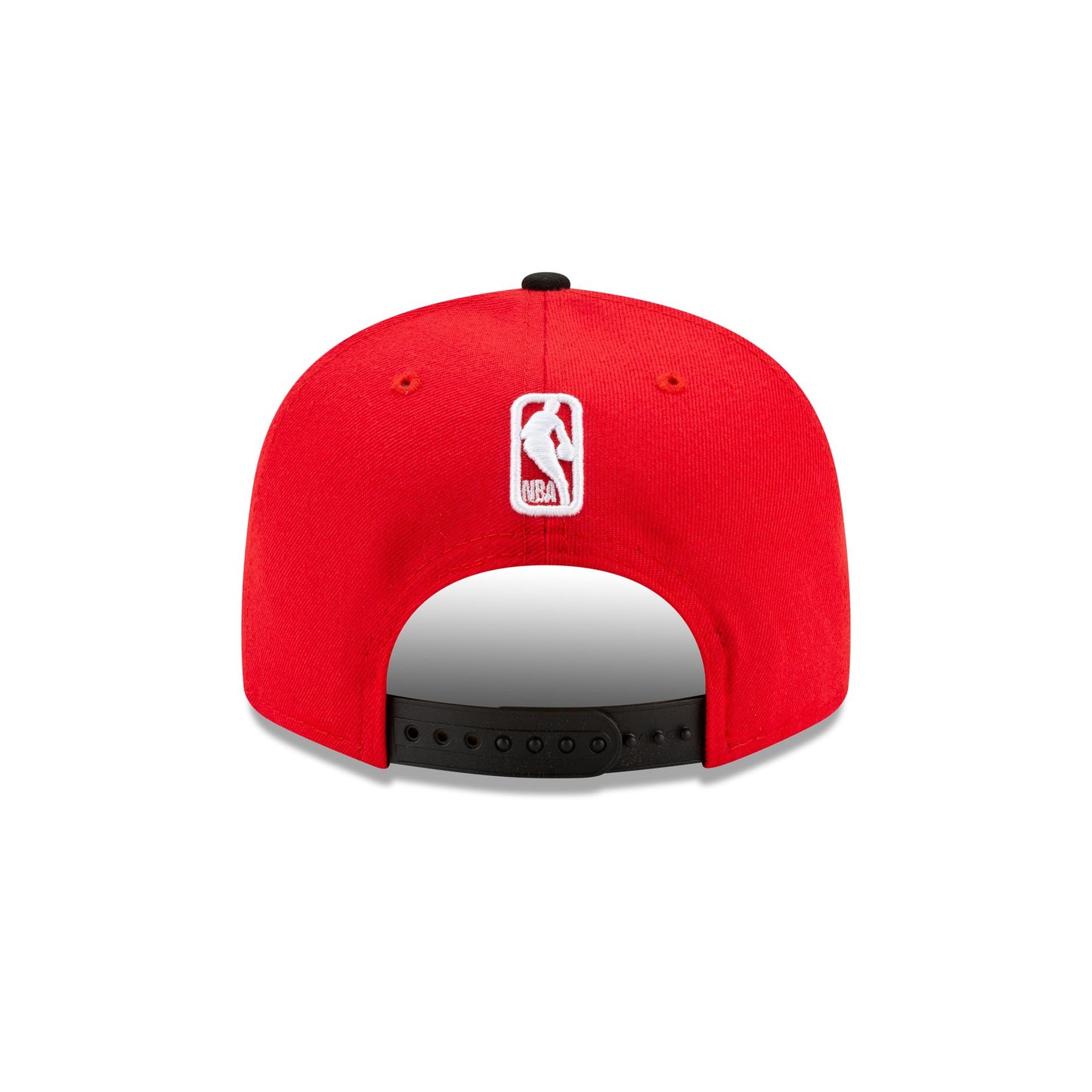 The Houston Rockets Basic Two Tone 9FIFTY Snapback features an embroidered Rockets logo at the front panels with a matching NBA Logoman above a snapback closure at the rear.