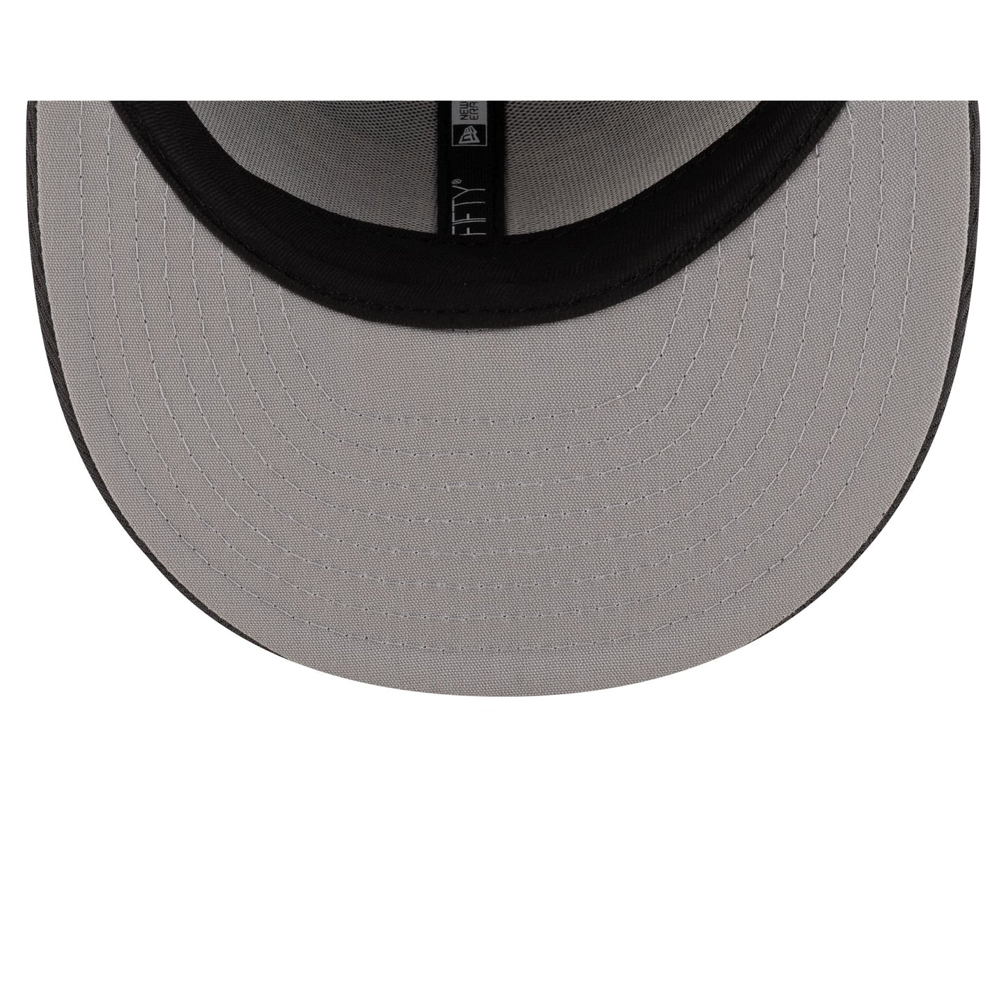 The Houston Roughnecks Gray 9FIFTY Snapback features an embroidered Roughnecks logo at the front panels with the New Era Flag at the left. Additional details include a UFL logo above a snapback closure at the rear and a gray undervisor.