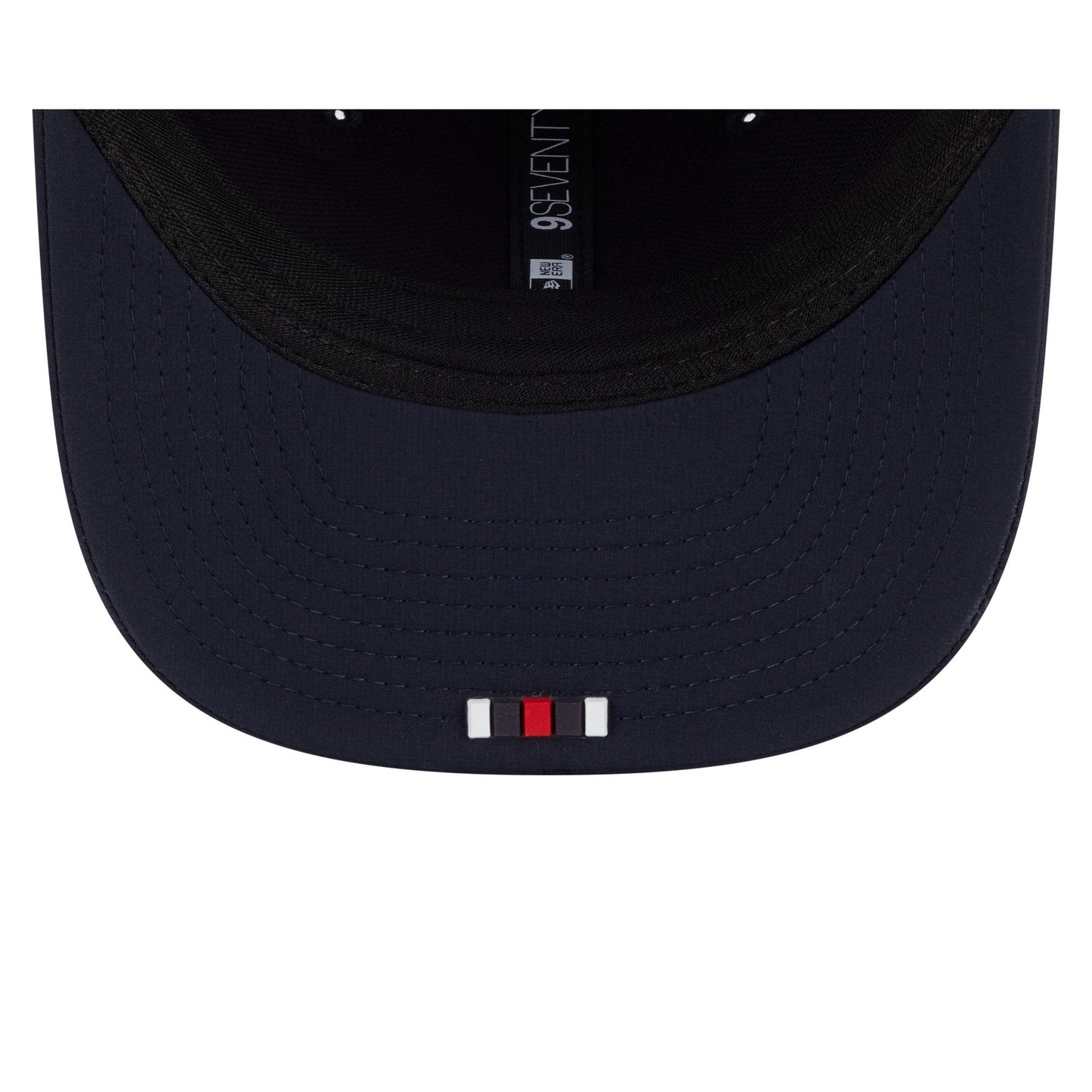 The Houston Texans 2025 Sideline Hot Weather 9SEVENTY Trucker features a sewn-down silicone Texans logo patch at the front panels with a water-repellent quill tech fabrication throughout and a quick-dry cushioned sweatband to absorb moisture. Additional details include the Official NFL Shield logo to the right of a soft silicone snapback closure at a light-weight mesh rear. The undervisor is accented with a silicone transfer in the team’s colors.