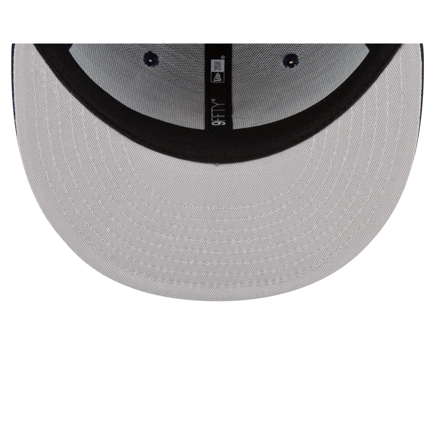 The Houston Texans Basic Navy 9FIFTY Snapback Cap features an embroidered Texans logo at the front panels with a gray undervisor and a snapback closure at the rear.