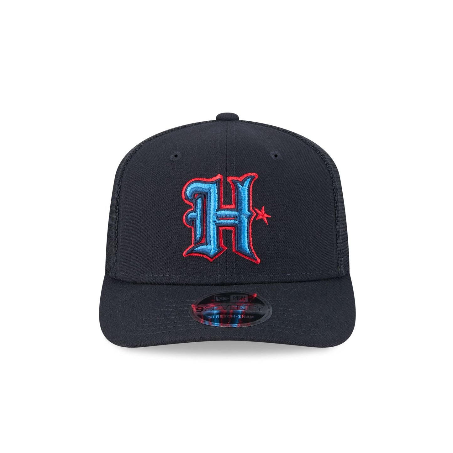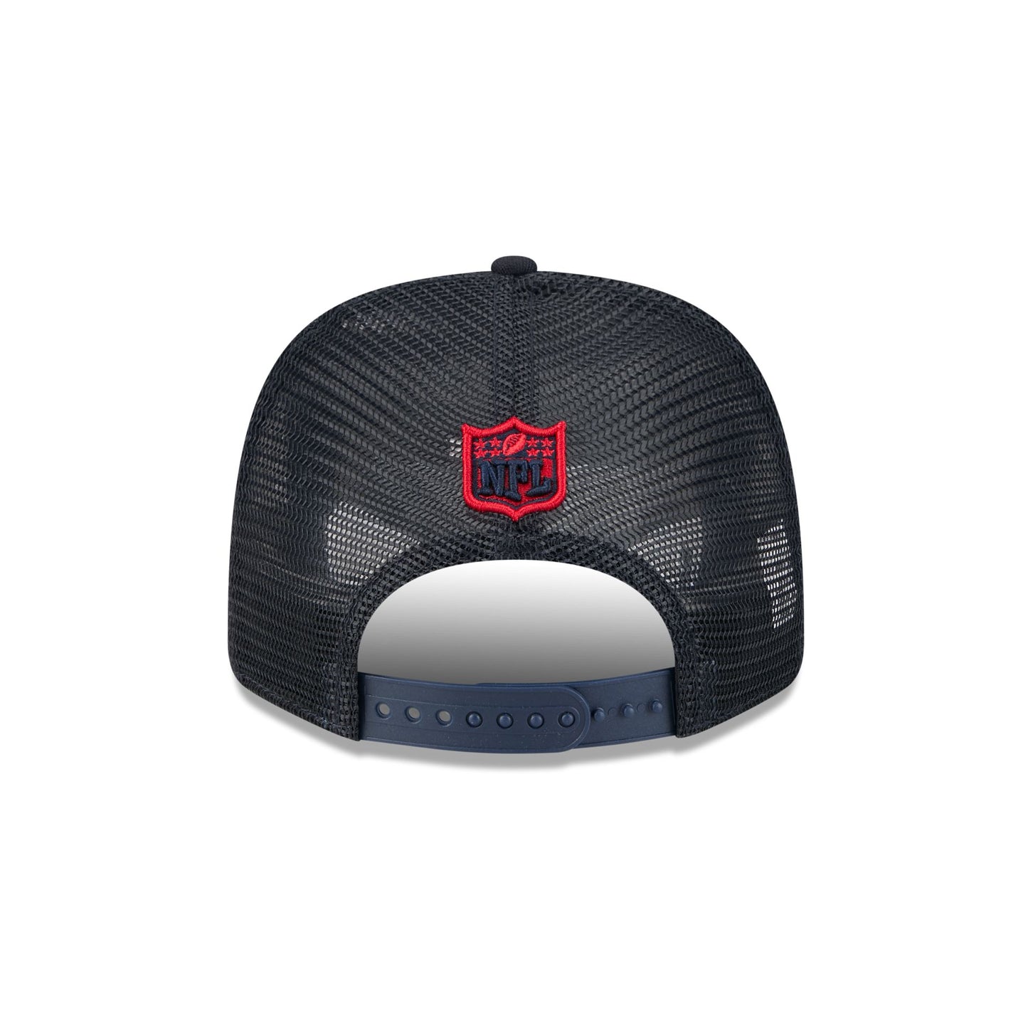 The Houston Texans Team Alternate 9SEVENTY Trucker features an embroidered Texans logo at the front panels with a team logo at the right-wear side. Additional details include a matching NFL Shield logo above an adjustable snapback closure at a mesh rear and a gray undervisor.