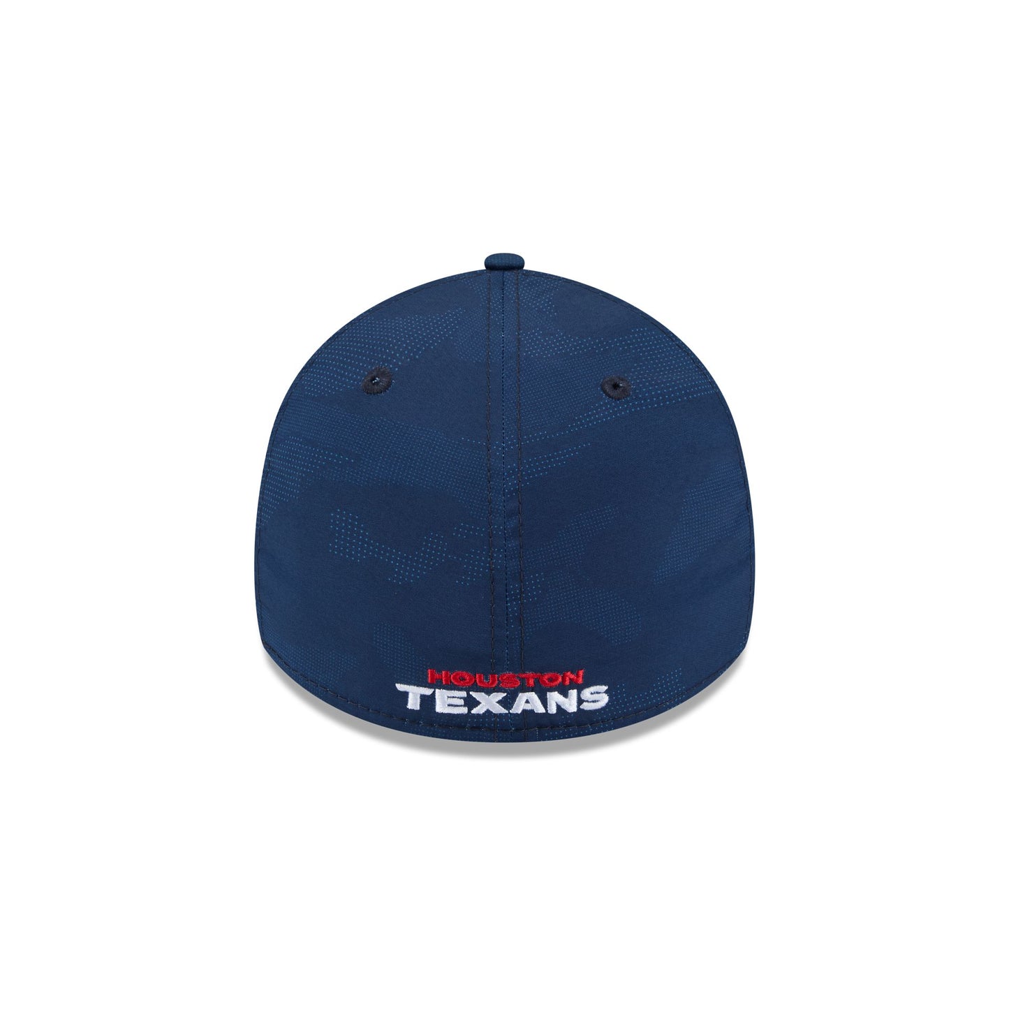 The Houston Texans Tonal Camo 39THIRTY Stretch-Fit Cap features an embroidered Texans logo at the front panels with a camo fabrication throughout with a wordmark at the rear and a gray undervisor.