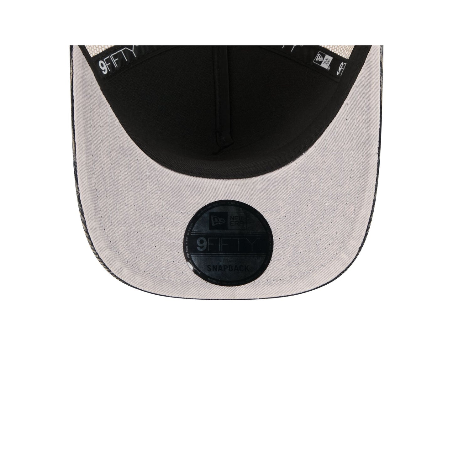 The Houston Texans Vintage Landscape 9FIFTY A-Frame Trucker features an embroidered Texans Vintage Landscape patch at the front panels with a team logo at the right-wear side. Additional details include an adjustable snapback closure at the rear and a gray undervisor.