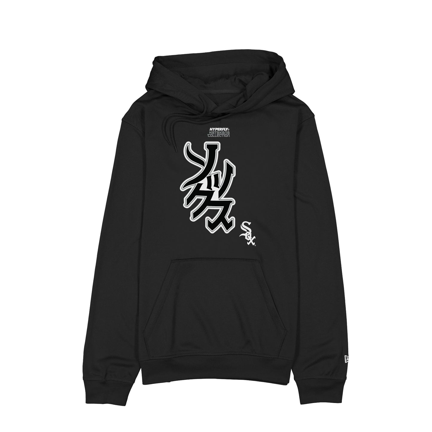 The Hyperfly Katakana x Chicago White Sox Hoodie features a screen-printed The Katakana Collection script with a White Sox Katakana themed wordmark above a team logo at the chest.