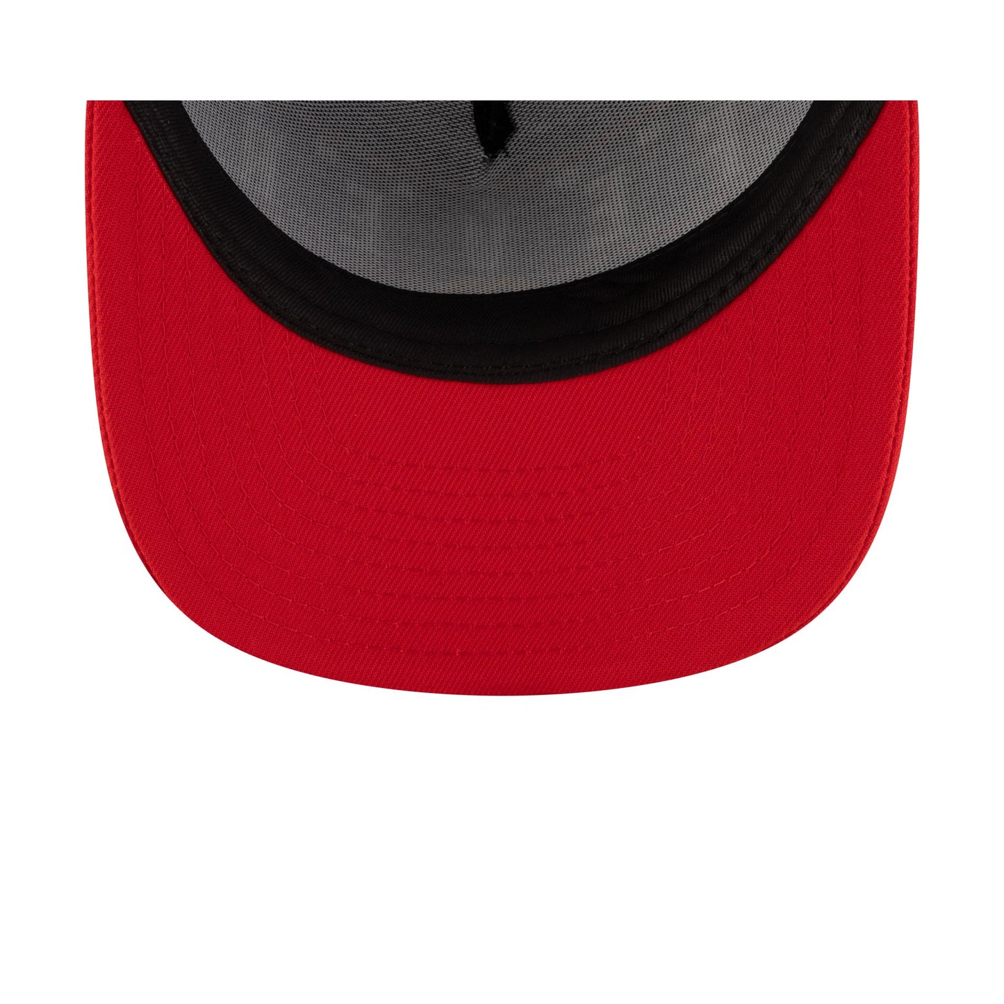 The Indiana Fever 2025 Draft 9FIFTY A-Frame Snapback features an embroidered Fever logo and wordmark at the front panels with a WNBA Logowoman above a snapback closure at the rear.