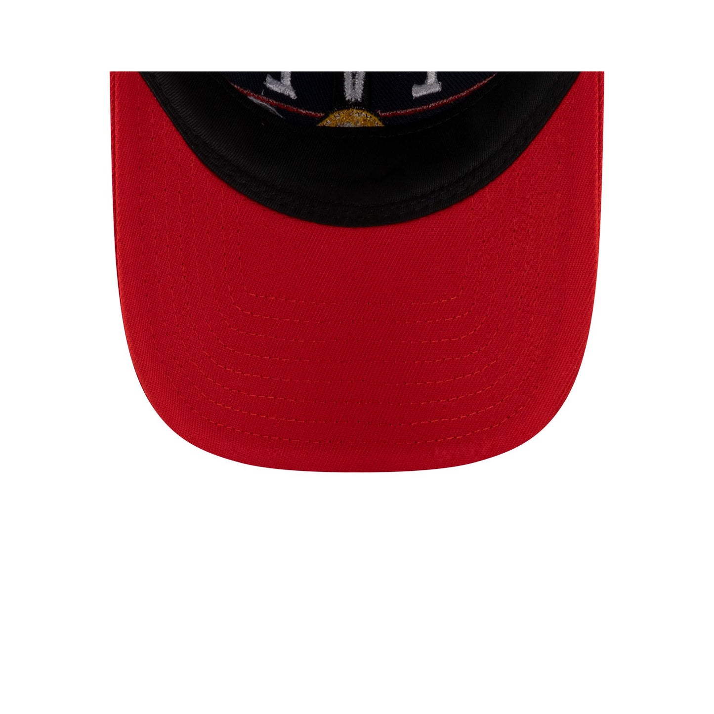 The Indiana Fever 2025 Draft 9TWENTY Adjustable Cap features an embroidered Fever logo and wordmark at the front panels with a WNBA Logowoman above an adjustable D-Ring closure at the rear.
