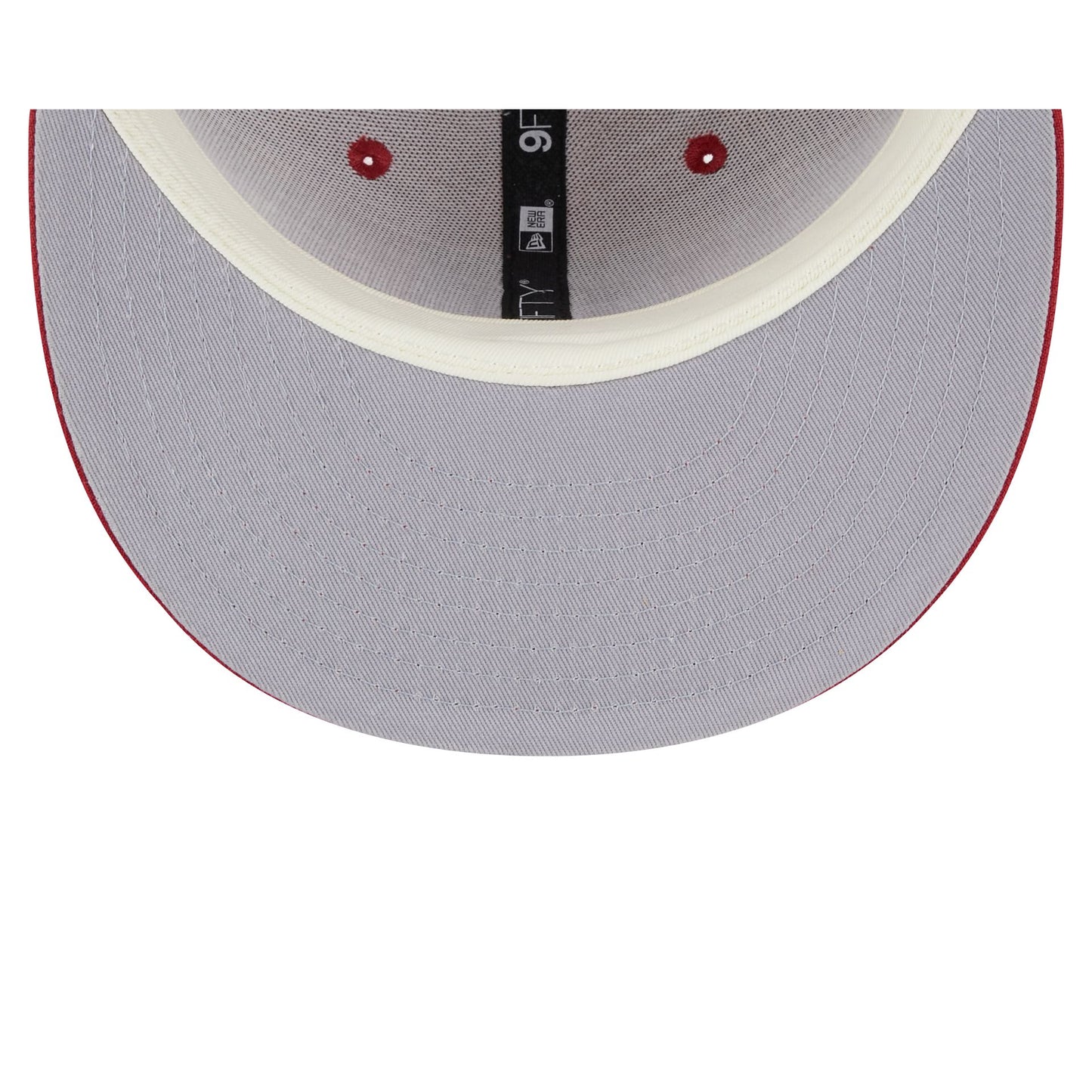 The Indiana Hoosiers Plaid 9FIFTY Snapback features an embroidered Hoosiers logo at the front panels against a matching plaid pattern. Additional details include a team logo above a snapback closure at the rear and a gray undervisor.