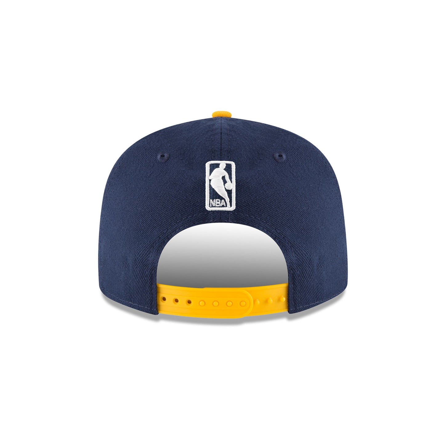 The Indiana Pacers Basic Two Tone 9FIFTY Snapback features an embroidered Pacers logo at the front panels with a matching NBA Logoman above a snapback closure at the rear.