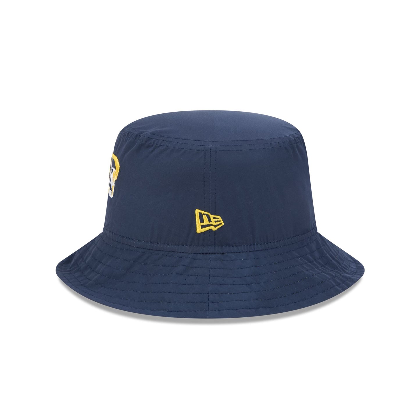 The Indiana Pacers Nylon Logo Bucket Hat features an embroidered Pacers logo, establishment date, and NBA Logoman at the front.