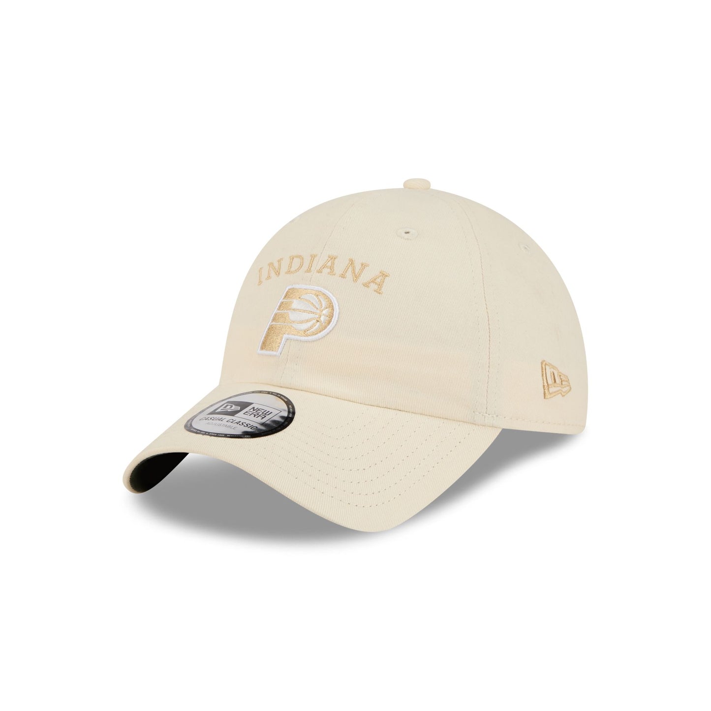 The Indiana Pacers Team Logo Cream Casual Classic Adjustable Cap features an embroidered Pacers wordmark and logo at the front panels with an adjustable D-Ring closure at the rear.