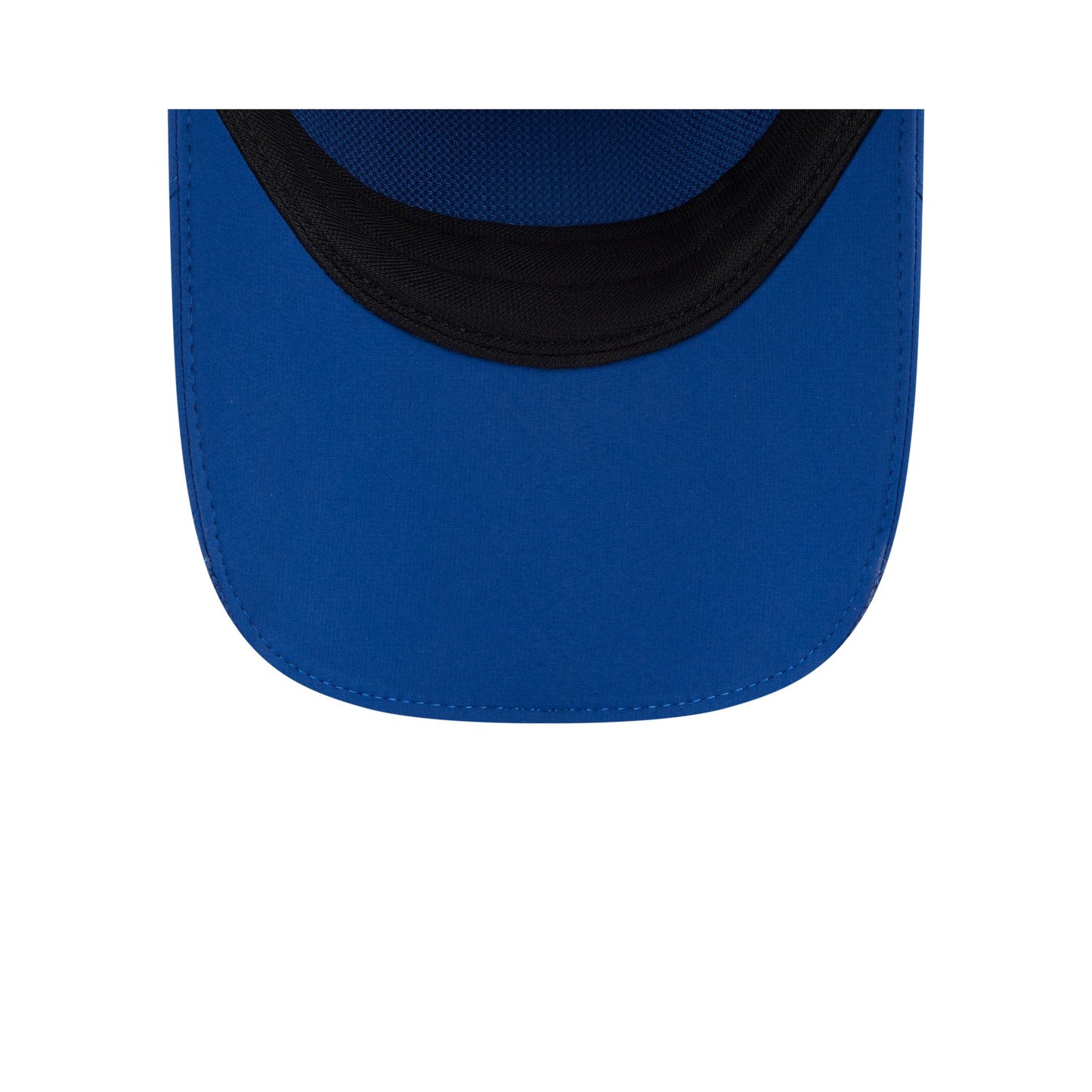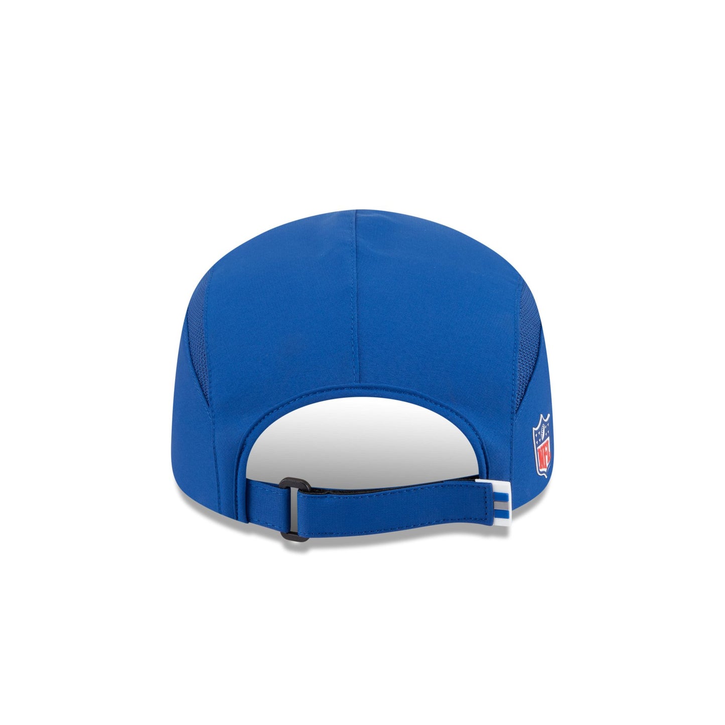The Indianapolis Colts 2025 Sideline Hot Weather Runner Adjustable Cap features a sewn-down silicone Colts logo patch at the front panels with a water-repellent quill tech fabrication throughout and a quick-dry cushioned sweatband to absorb moisture. Additional details include the Official NFL Shield logo to the right of an adjustable hook-and-loop closure at the rear and mesh accents at the visor sides and side crown panels. The closure is accented with mesh a silicone transfer in the team’s colors.