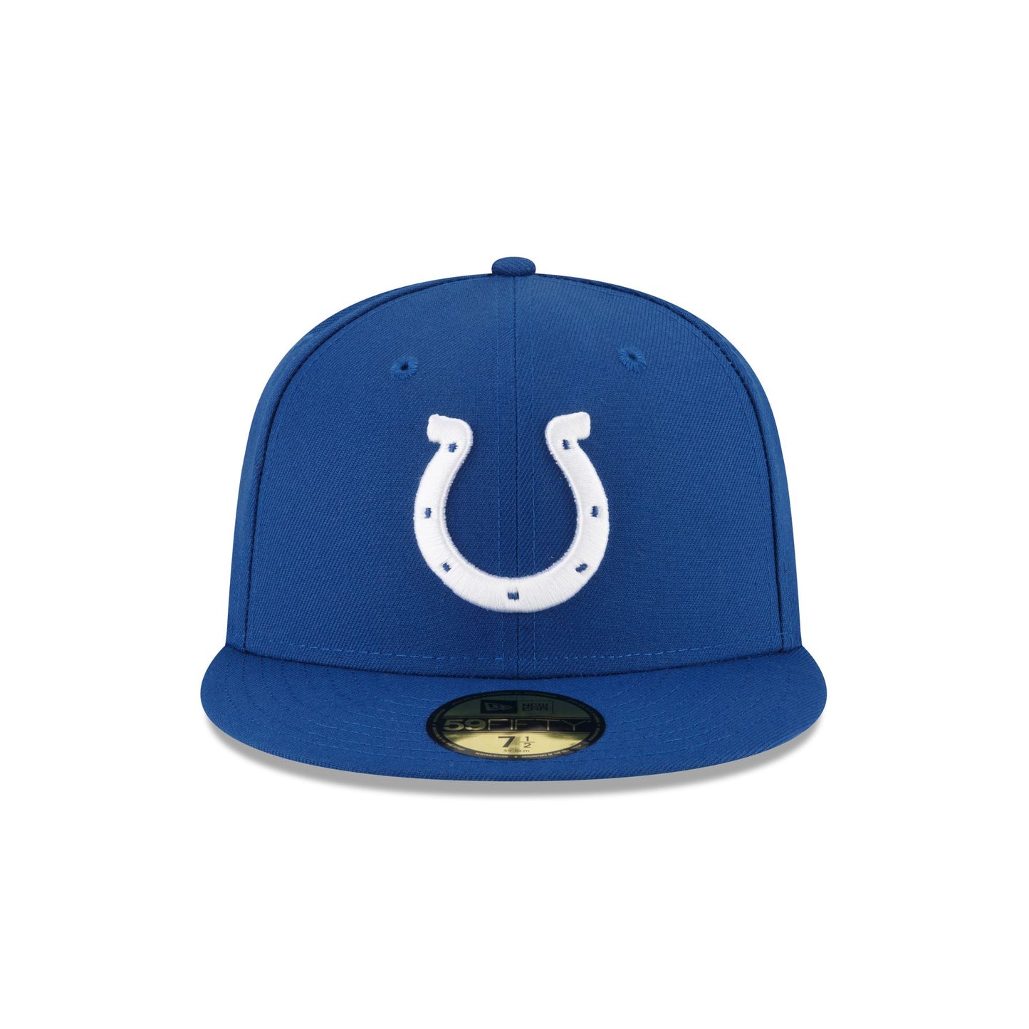 The Indianapolis Colts Basic Blue 59FIFTY Fitted Cap features an embroidered Colts logo at the front panels with a team wordmark at the rear and gray undervisor.