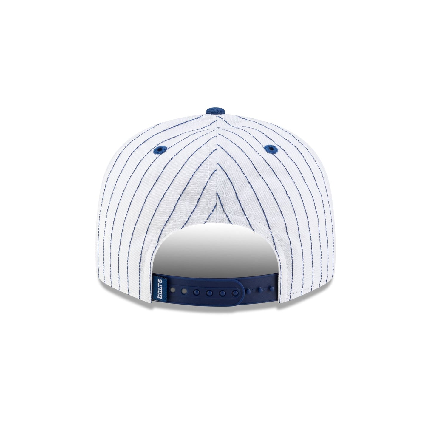 The Indianapolis Colts Deceptor 9FIFTY Snapback features an embroidered Colts deceptive logo at the front panels with a team logo at the right-wear side. Additional details include a snapback closure at the rear and a gray undervisor.