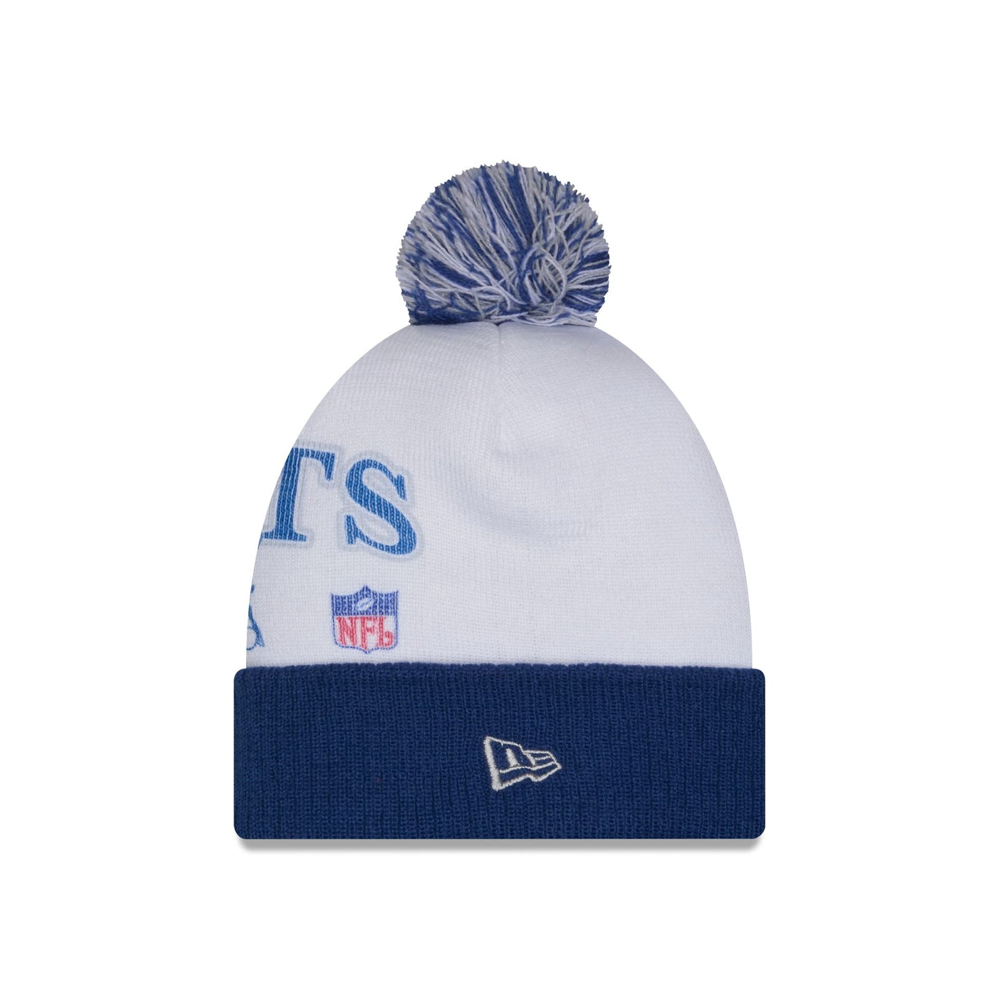 The Indianapolis Colts Spirit Pom Knit features a screen-printed Colts Historic graphic at the crown with a one-time removable pom.