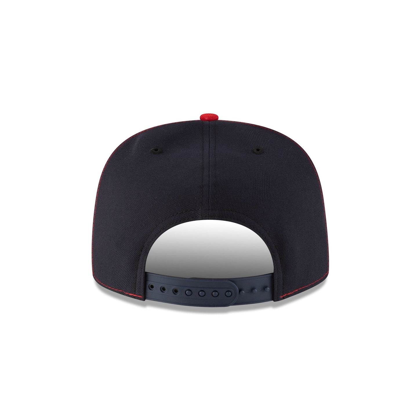 The Indianapolis Indians 9FIFTY A-Frame Snapback features an embroidered Indians logo at the front panel with team color paneled crown, a snapback closure at the rear, and a green undervisor.