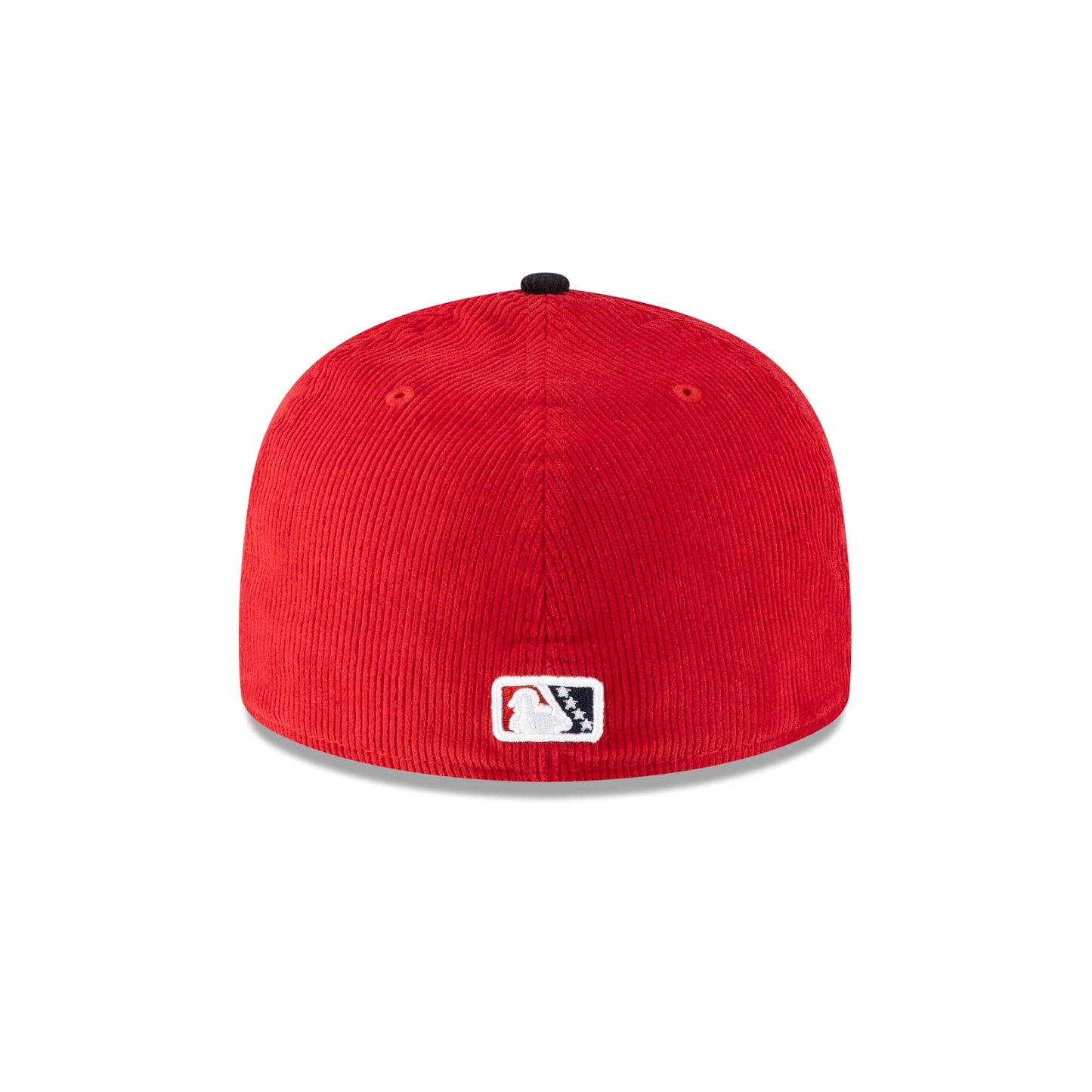 The Indianapolis Indians Corduroy 59FIFTY Fitted features an embroidered Indians mascot at the front panels with a matching MiLB Batterman logo at the rear and a green undervisor.