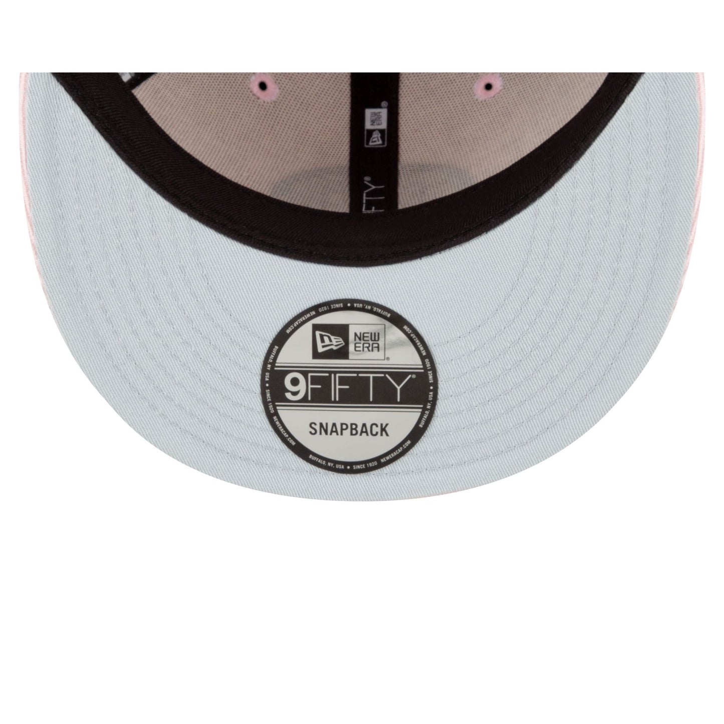 The Inter Miami 9FIFTY Snapback features an embroidered Inter Miami patch at the front panels with a team wordmark above a snapback closure at the rear.