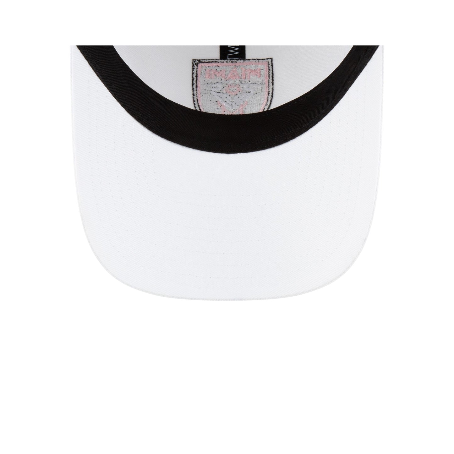 The Inter Miami Basic White 9TWENTY Adjustable Cap features an embroidered Inter Miami crest at the front panels with a team wordmark above an adjustable closure at the rear.