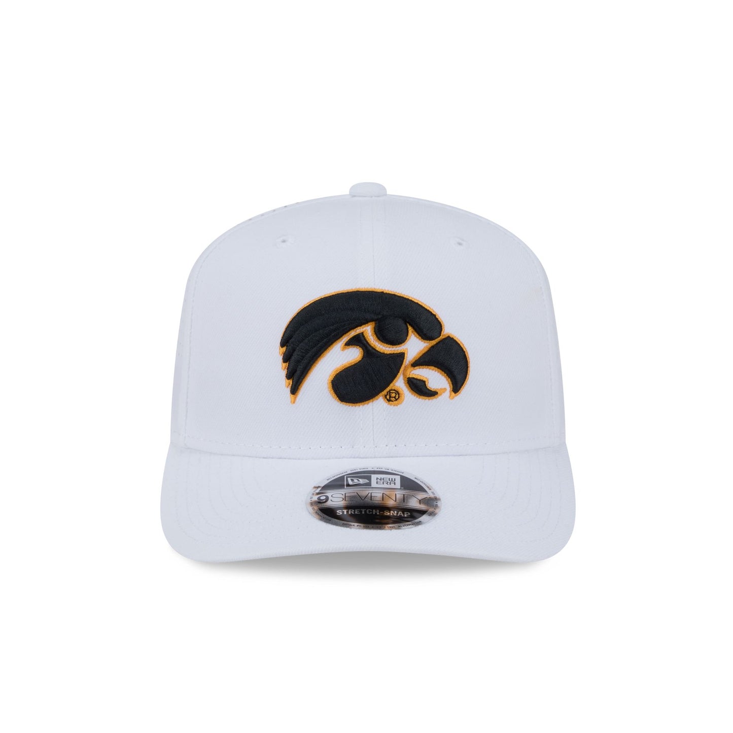 The Iowa Hawkeyes Optic White Performance 9SEVENTY Stretch-Snap features an embroidered Hawkeyes logo at the front panels with an adjustable stretch-snap closure at a performance mesh rear.