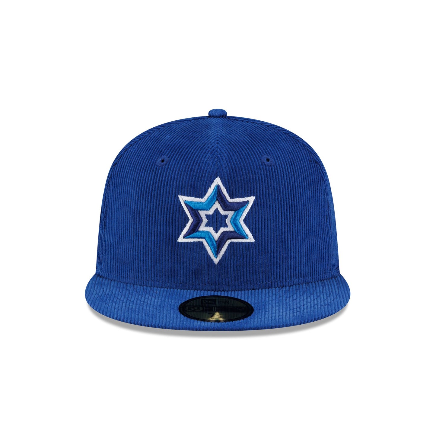 The Israel 2025 World Baseball Classic 59FIFTY Fitted Cap features an embroidered Israel logo at the front panels with their Flag at the right-wear side against a corduroy fabrication. Additional details include a World Baseball classic logo at the rear with a gray undervisor.