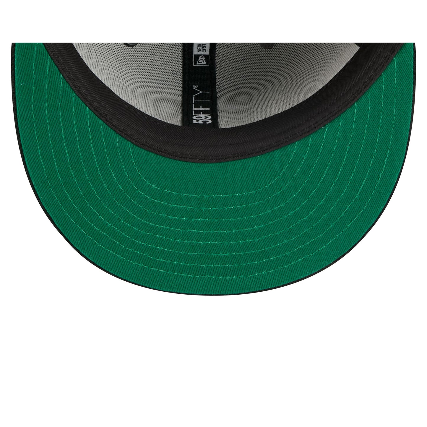 The Jacksonville Jaguars Heather Gray Wool 59FIFTY Fitted Cap features an embroidered Jaguars Historic logo and conference pin at the front panels against a wool fabrication throughout. Additional details include a helmet graphic at the right-wear side, an NFL Shield logo at the rear, and a green undervisor.