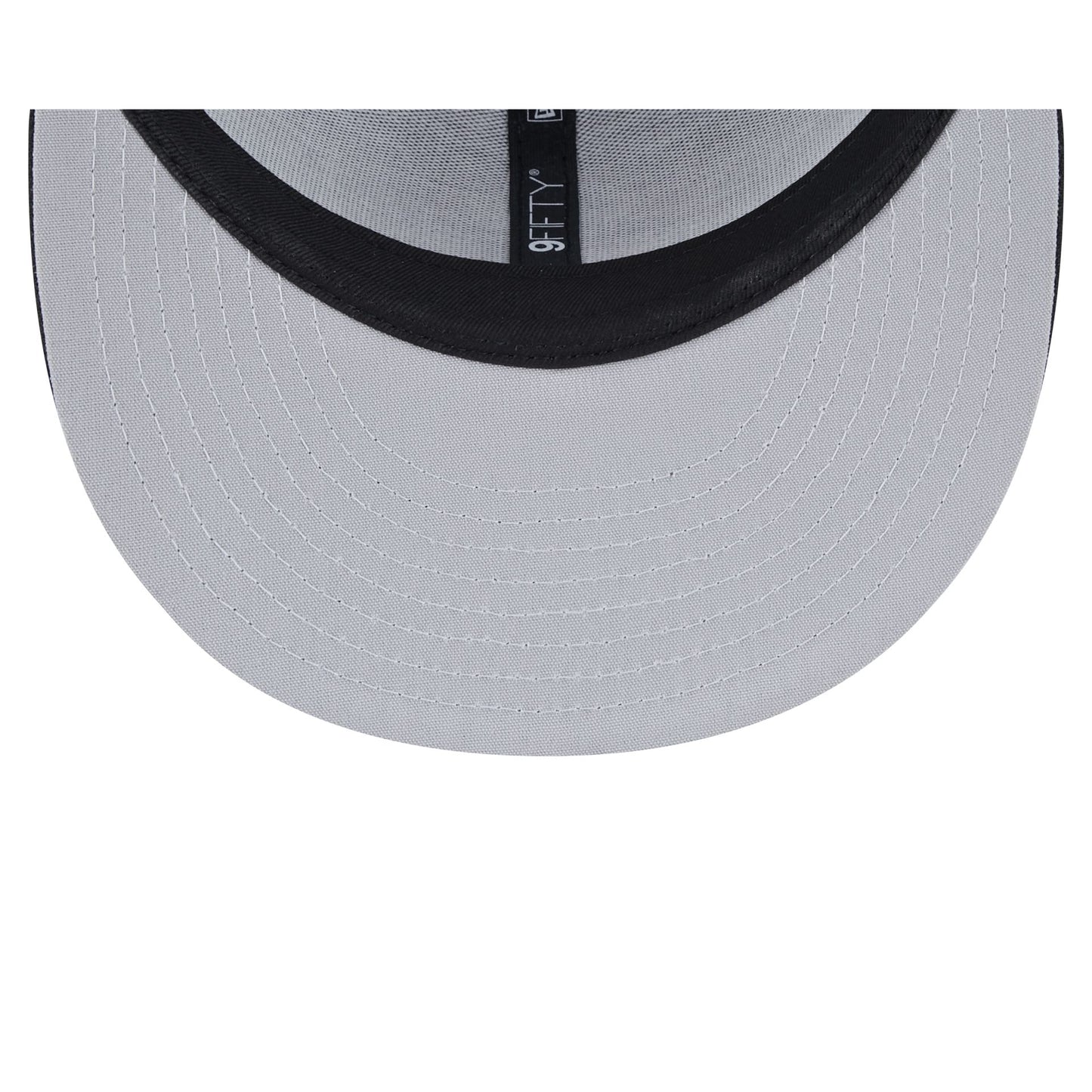 The Joker Team Tag 9FIFTY Trucker features an embroidered Joker logo at the front panels with a team tag on a snapback closure at a mesh rear and a gray undervisor.