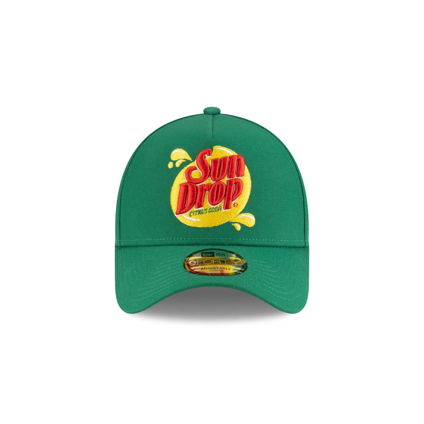 The JR Motorsports Dale Earnhardt Jr. Sun Drop Partner 9FORTY A-Frame Snapback features an embroidered Sun Drop logo at the front panels with the driver's number above an adjustable snapback closure at the rear and a gray undervisor.