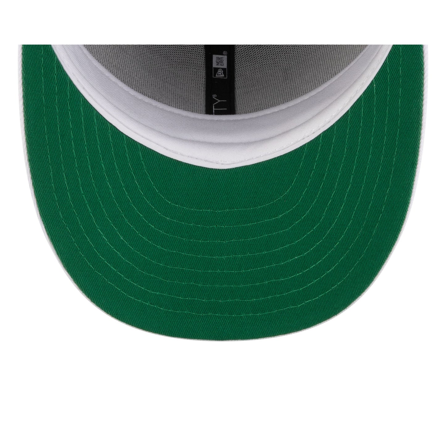 The Just Caps College Champions Sidepatch Louisville Cardinals 59FIFTY Fitted Cap features an embroidered Cardinals College Vault logo at the front panels with a 1986 Final Four patch at the right-wear side and a green undervisor. This cap has a pre-curved visor.