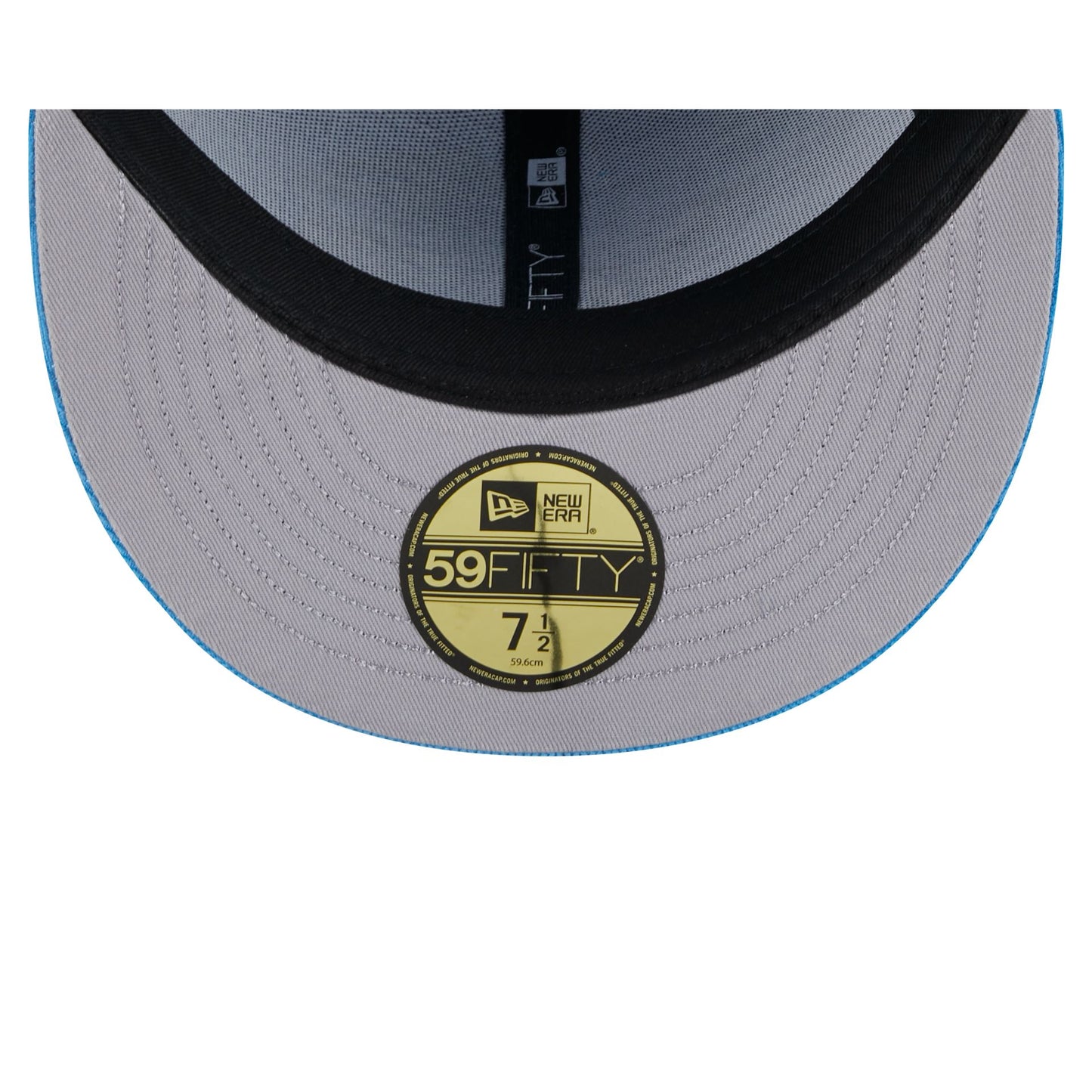 The Just Caps Floral Corduroy Detroit Lions 59FIFTY Fitted Cap features an embroidered Lions logo at the front panels against a corduroy fabrication with a matching NFL Shield at the rear. Additional details include embroidered flowers at the visor, a 2003 Pro Bowl patch at the right-wear side, and a gray undervisor.