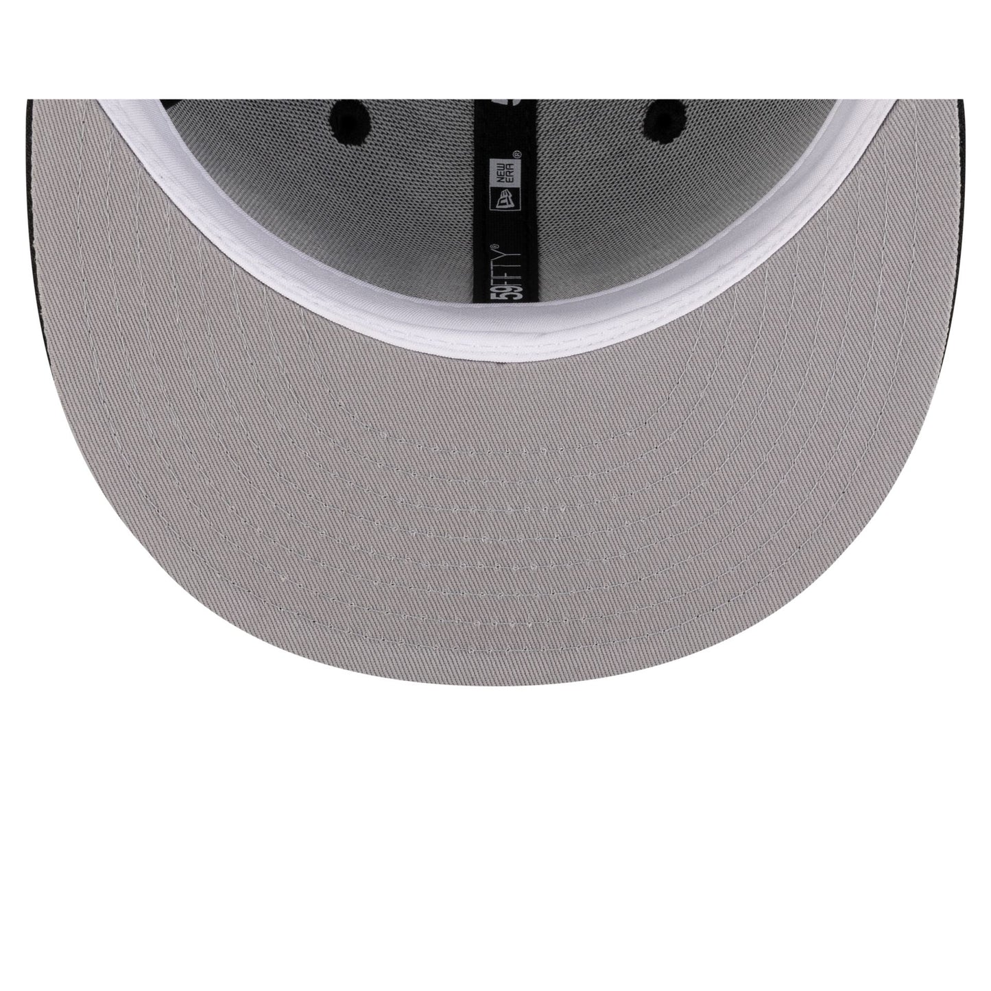 The Just Caps Gothic Script Detroit Tigers 59FIFTY Fitted Cap features an embroidered Tigers Cooperstown logo at the front panels with a matching MLB Batterman logo at the rear and a gray undervisor.