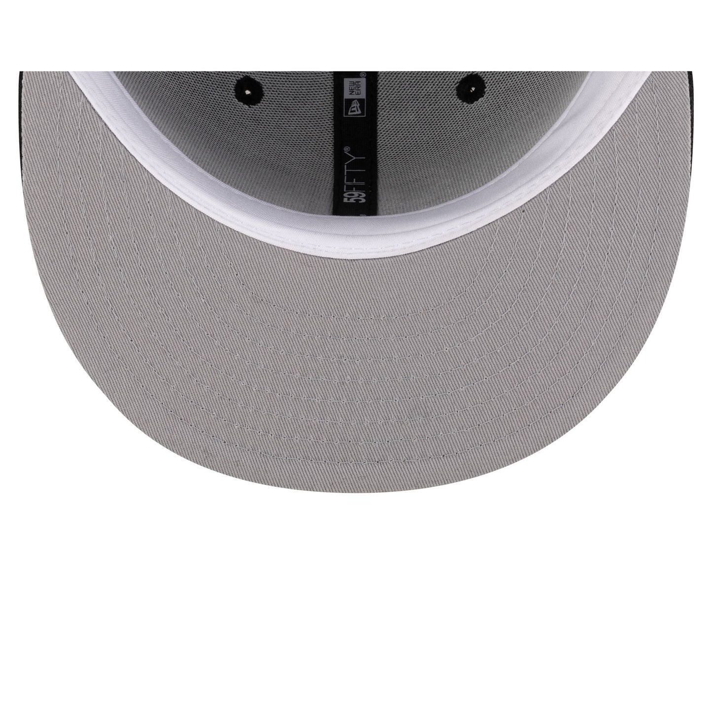 The Just Caps Gothic Script Louisville Cardinals 59FIFTY Fitted Cap features an embroidered Cardinals logo at the front panels with a team wordmark at the rear and a gray undervisor.