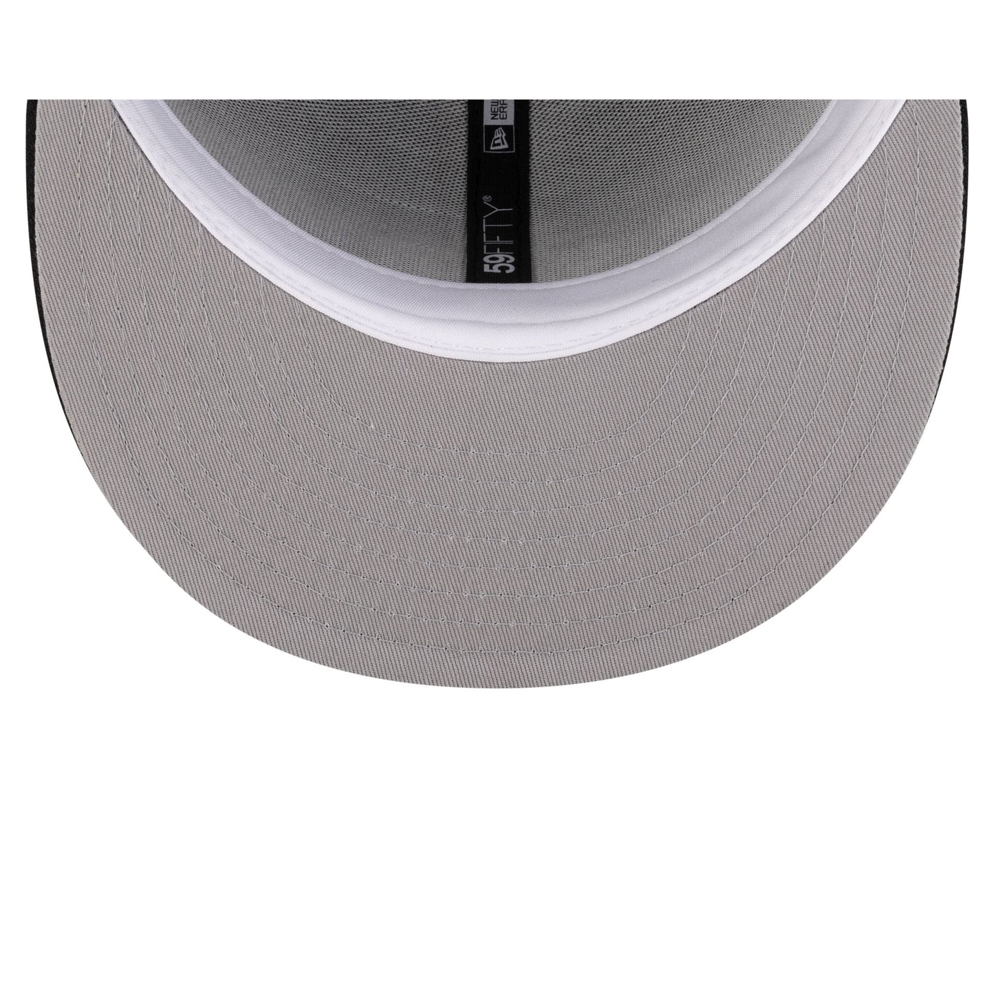 The Just Caps Gothic Script Montreal Canadiens 59FIFTY Fitted Cap features an embroidered Canadiens Historic logo at the front panels with a matching NHL Shield at the rear and a gray undervisor.