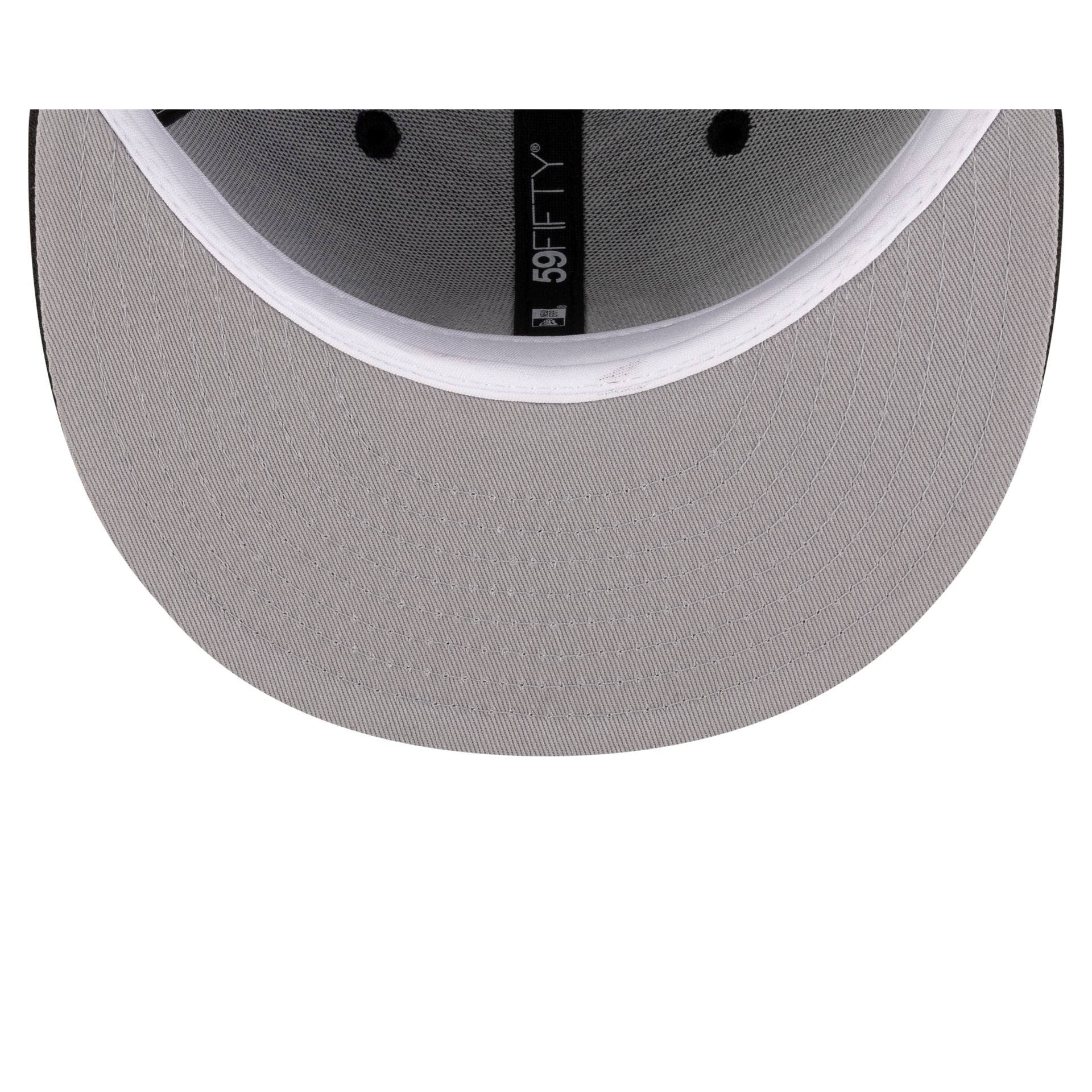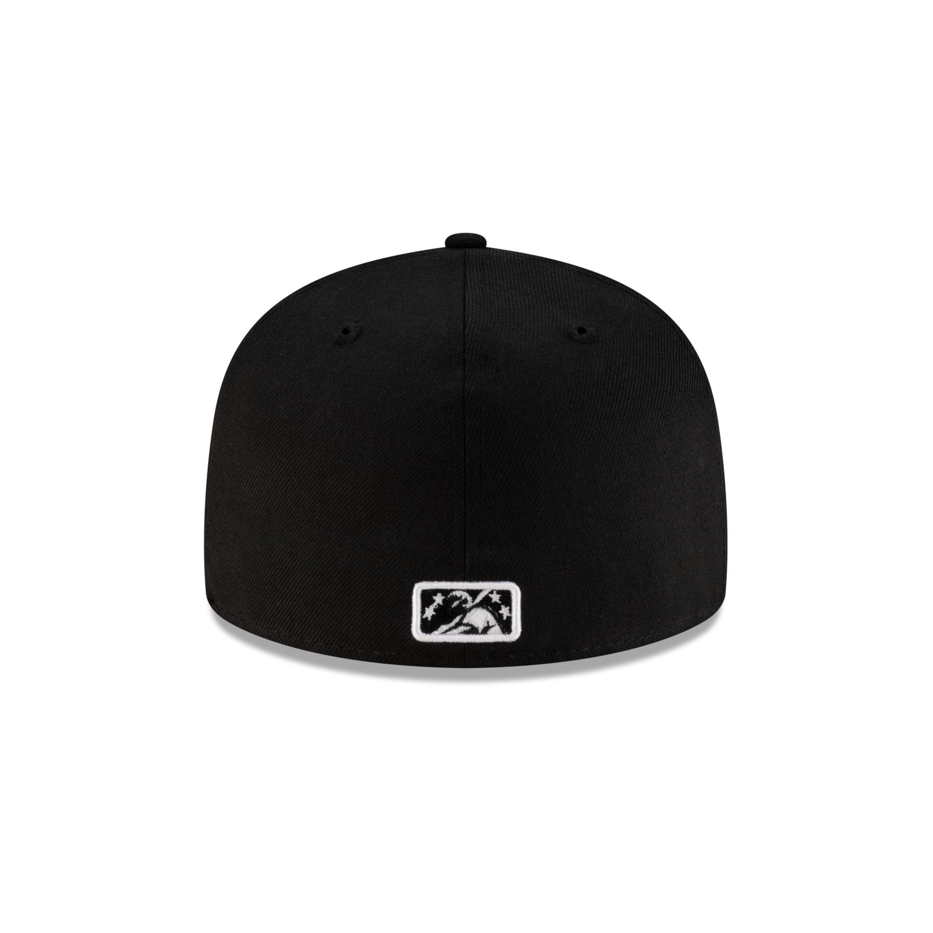 The Just Caps Gothic Script Oakland Oaks 59FIFTY Fitted Cap features an embroidered Oaks logo at the front panels with a matching MiLB Batterman logo at the rear and a gray undervisor.