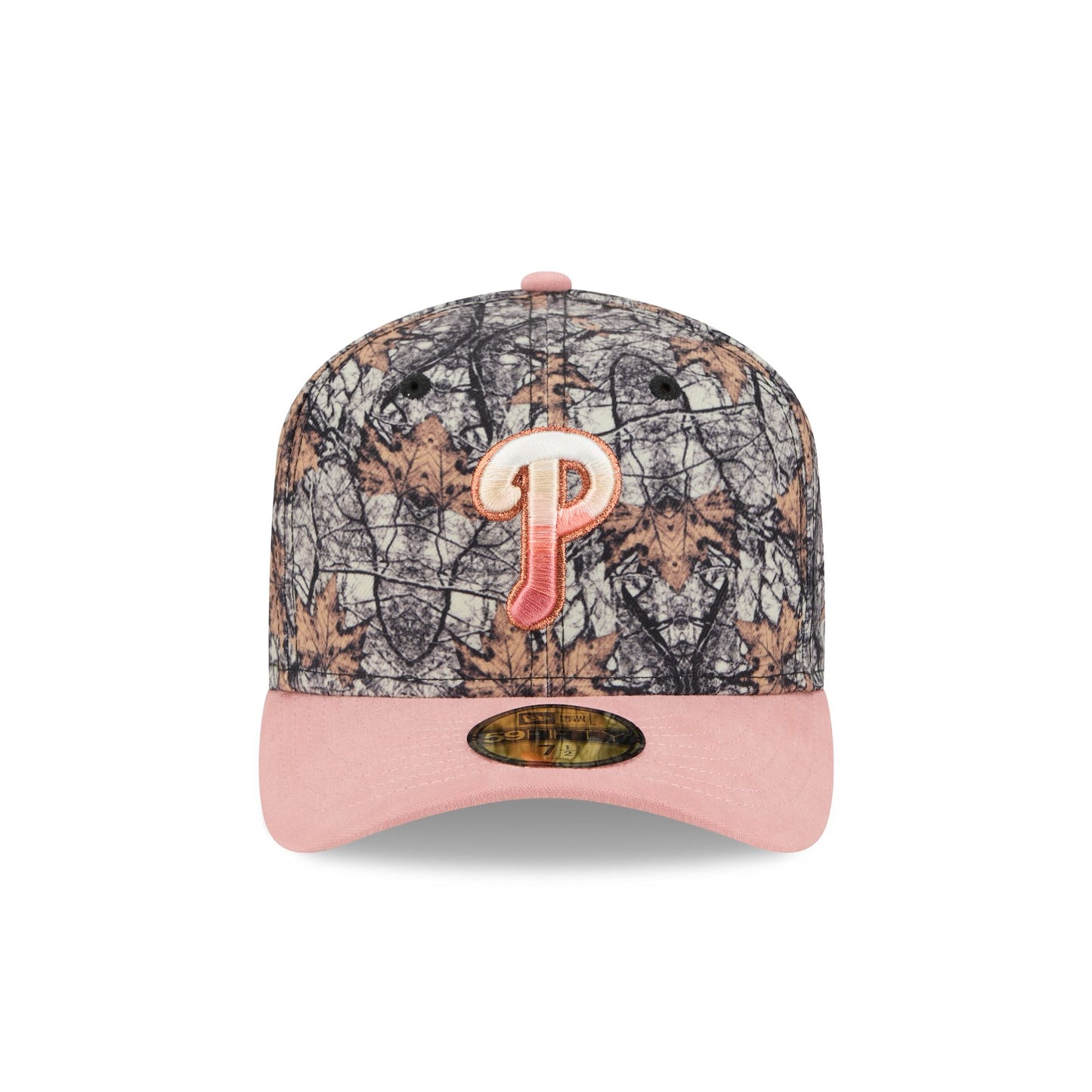 The Just Caps Gradient Camo Philadelphia Phillies 59FIFTY Fitted Cap features an embroidered Phillies logo at the front panels against a camo print fabrication throughout. Additional details include a 1996 All-Star Game patch at the right-wear side and a matching MLB Batterman logo at the rear. This cap comes with a pre-curved visor.