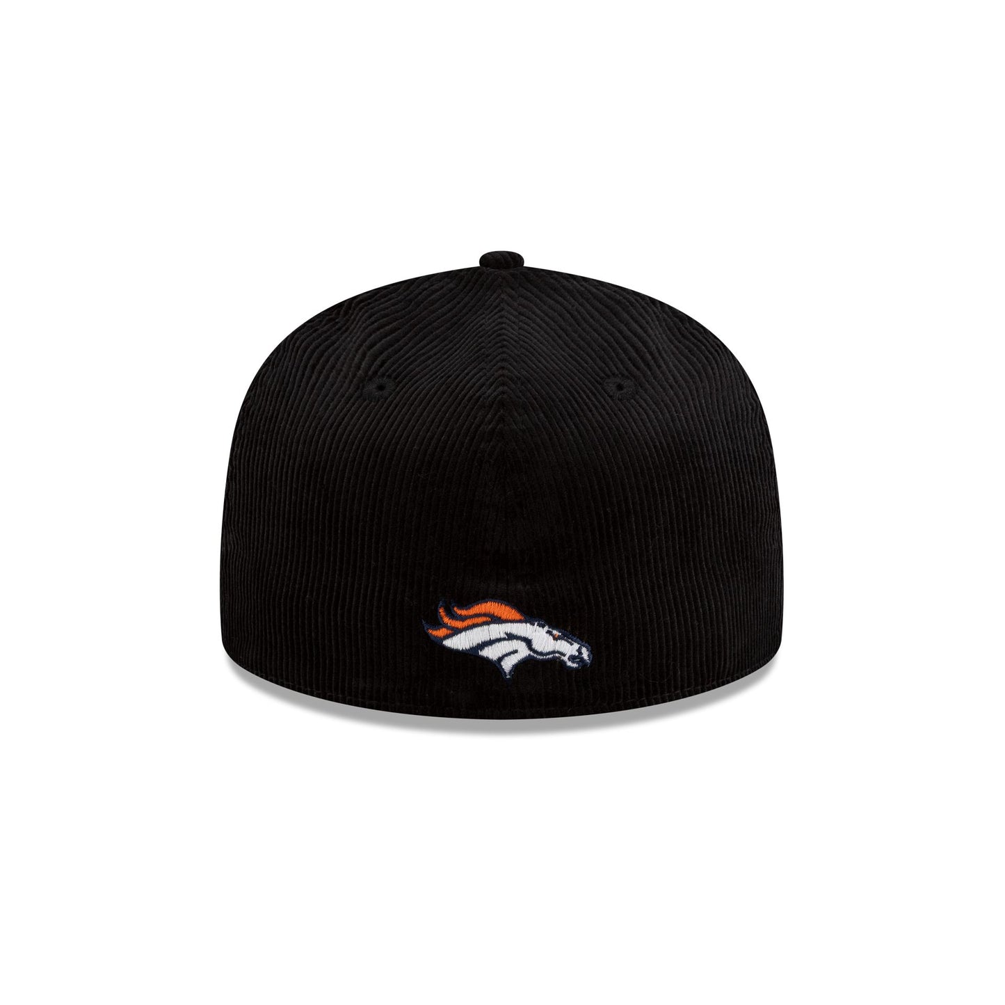 The Just Caps NFL Pixelated Denver Broncos 59FIFTY Fitted Cap features an embroidered Broncos pixel logo at the front panels against a corduroy fabrication throughout. Additional details include a team logo at the rear and a gray undervisor.