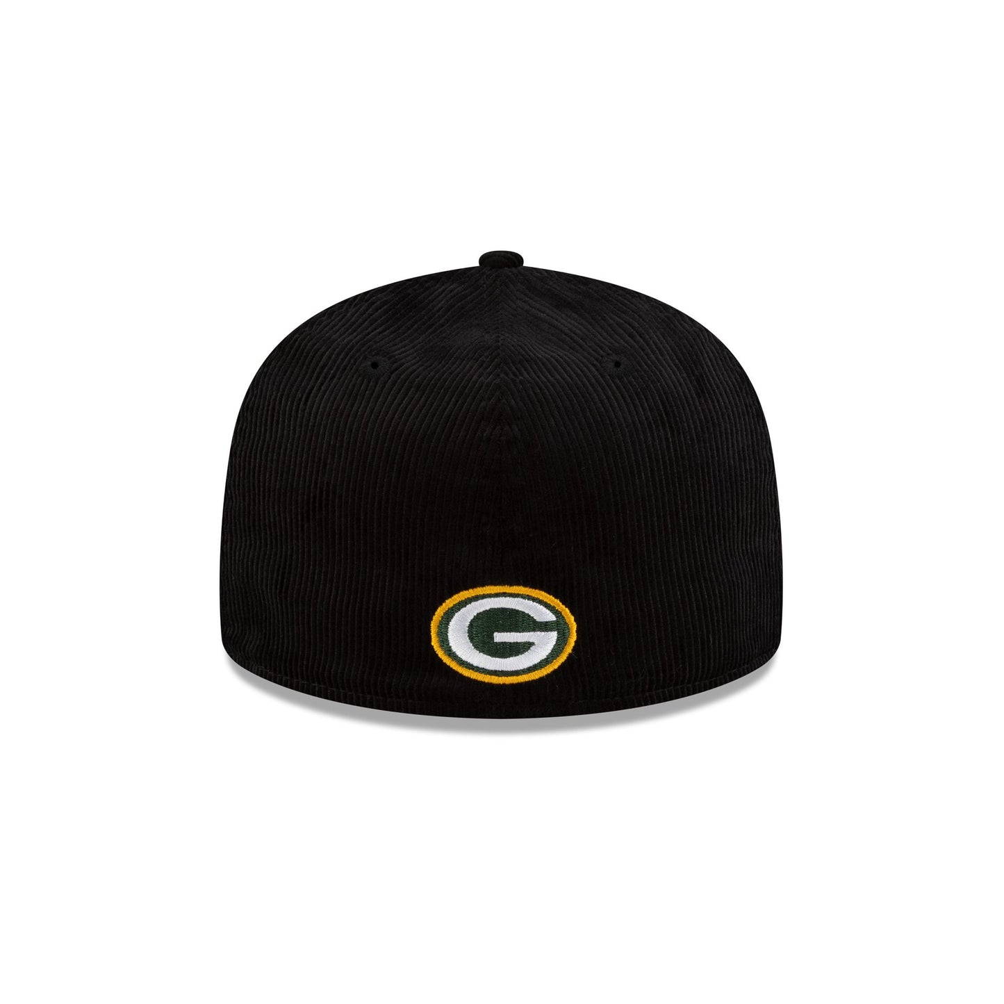 The Just Caps NFL Pixelated Green Bay Packers 59FIFTY Fitted Cap features an embroidered Packers pixel logo at the front panels against a corduroy fabrication throughout. Additional details include a team logo at the rear and a gray undervisor.
