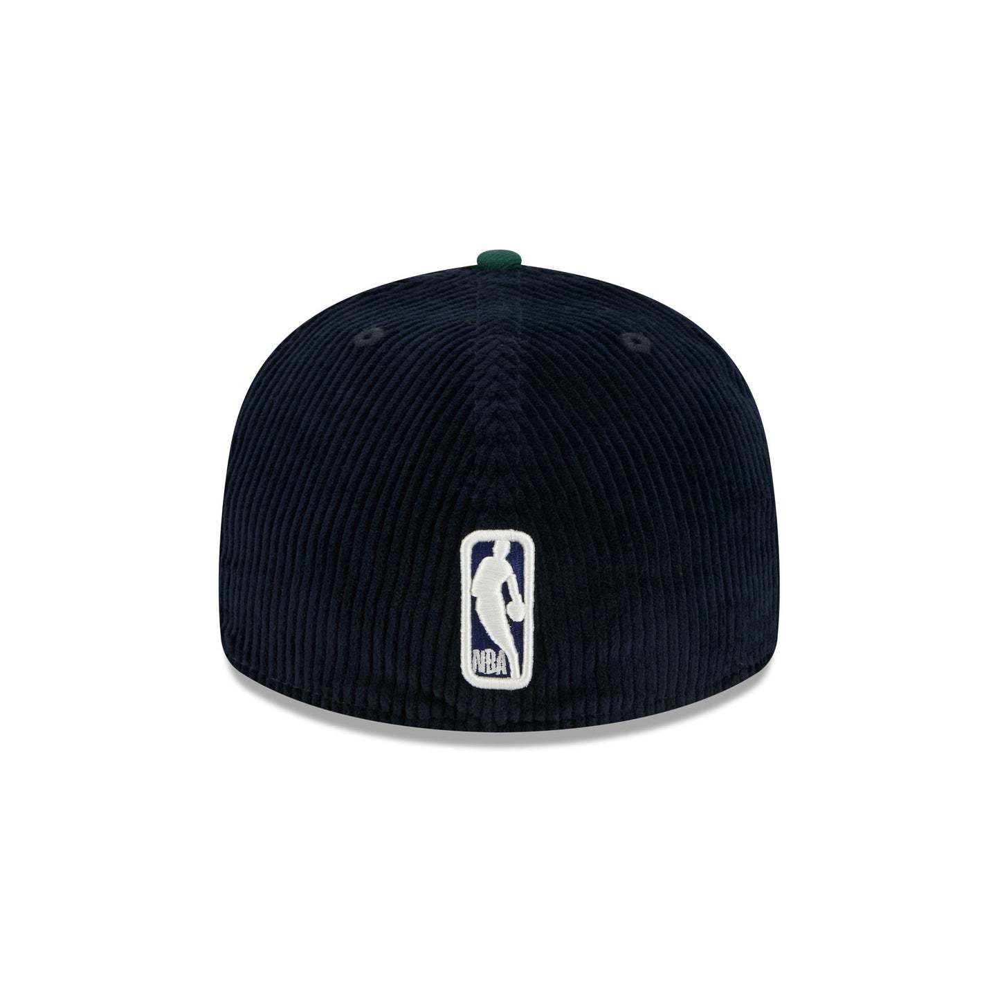 The Just Caps Plaid Interior Golden State Warriors Retro Crown 59FIFTY Fitted Cap features an embroidered Warriors wordmark at the front panels with a matching NBA Logoman at the rear, a green visor, and a plaid lined interior.