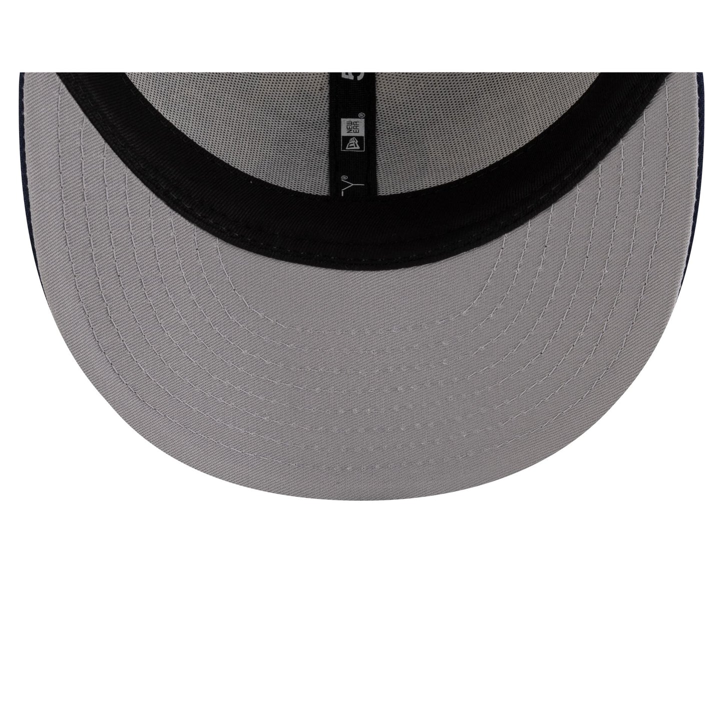 The Just Caps Realtree Denver Broncos Low Profile 59FIFTY Fitted Cap features an embroidered Broncos wordmark and helmet patch at the front panels with a matching NFL Shield at the rear. Additional details include a Super Bowl 50 patch at the right-wear side with a team color visor and a gray undervisor.